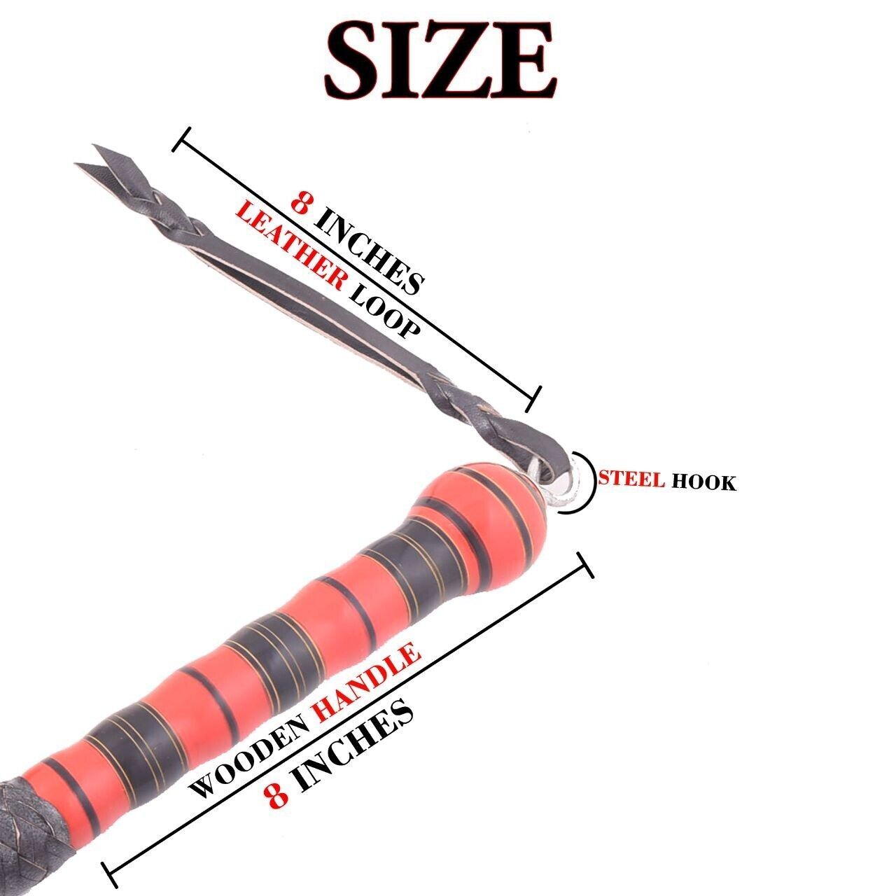 7 Inches Long Handle made of strong Fine Wood , Handle is Braided with Brown Real Cow Hide Leather For Strong Grip while Cracking.