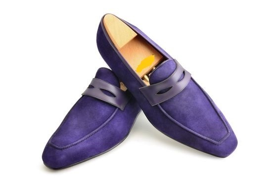 Purple Apron Toe Handmade Suede Leather Moccasin Loafer Slip Ons Men Shoes