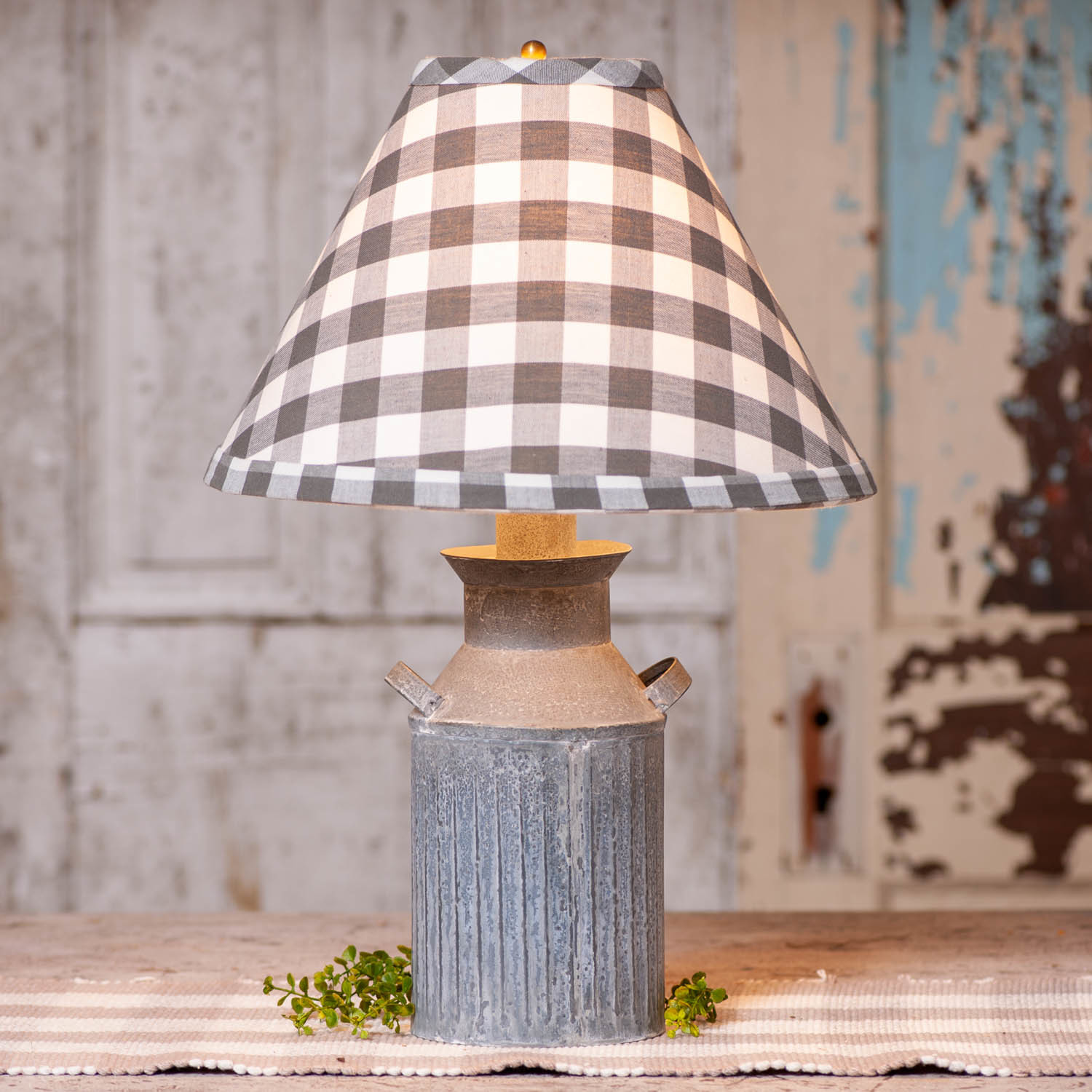 Metal Milk Jug Lamp with Gray Check Shade Country Farmhouse Light