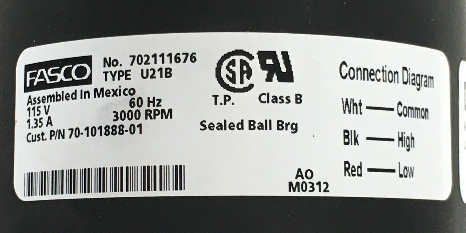 This is FASCO 702111676 U21B Draft Inducer Blower Motor Assembly 70-101888-01 115V 3000RPM used part.