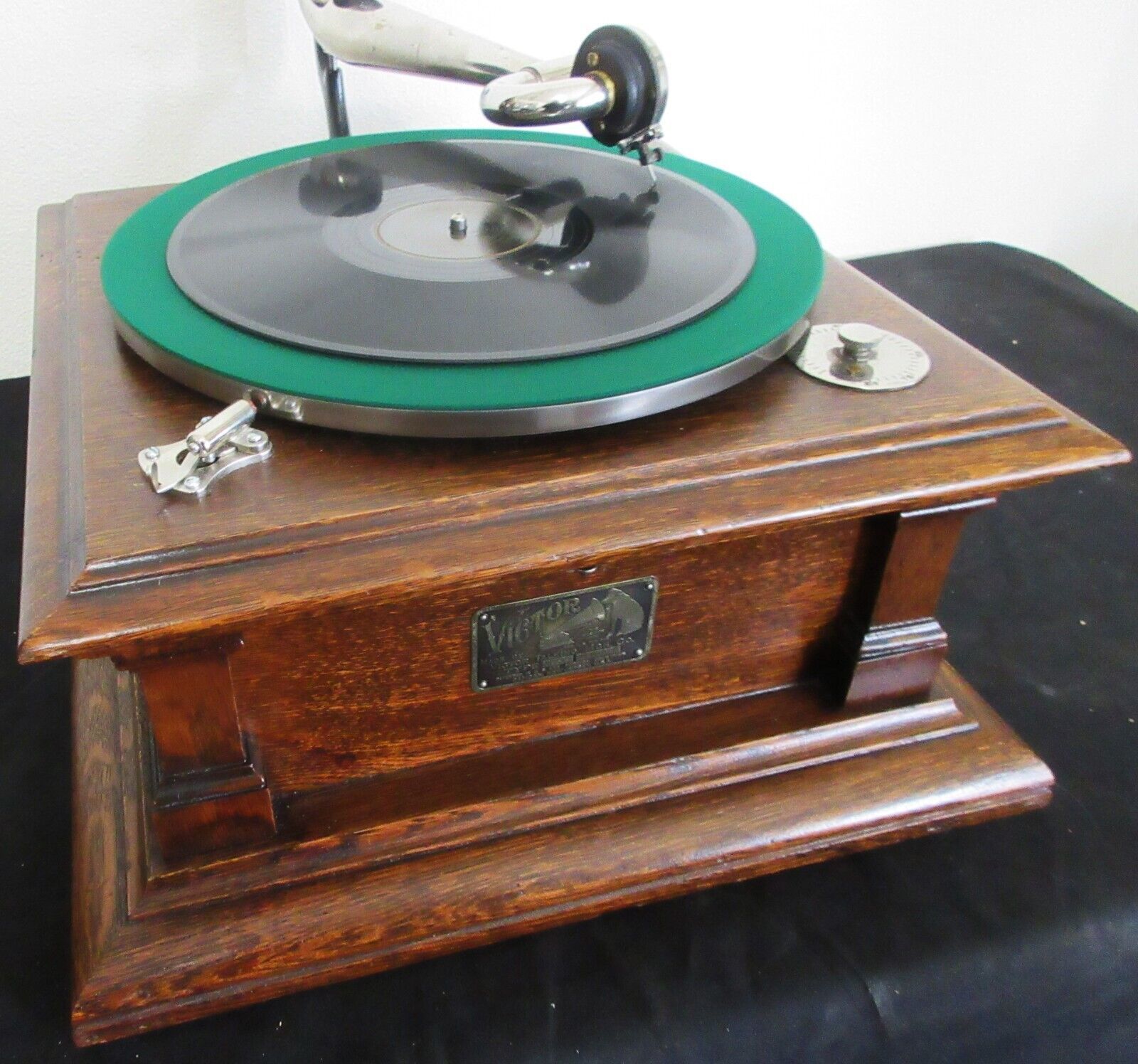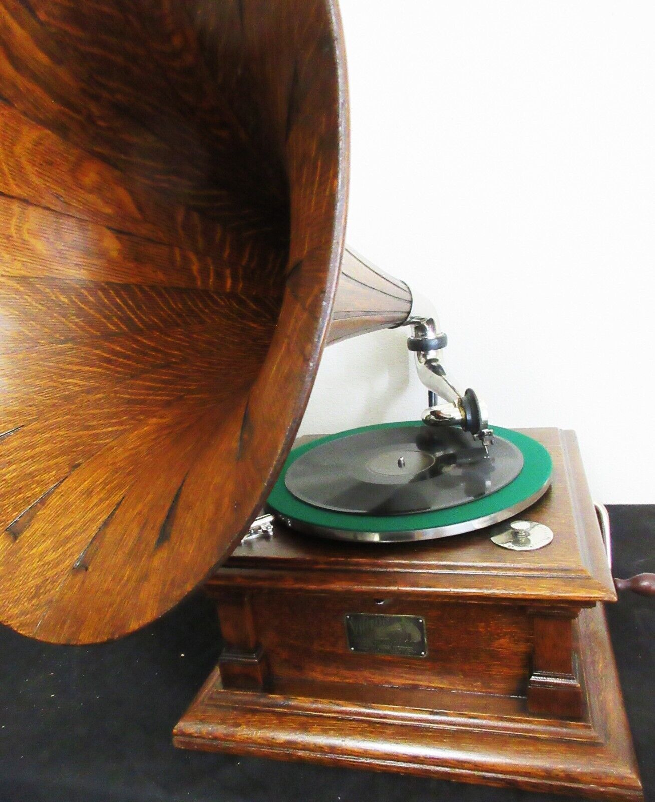 Victor V Phonograph with Original Oak Spear Tip Horn circa 1905 Fully Restored