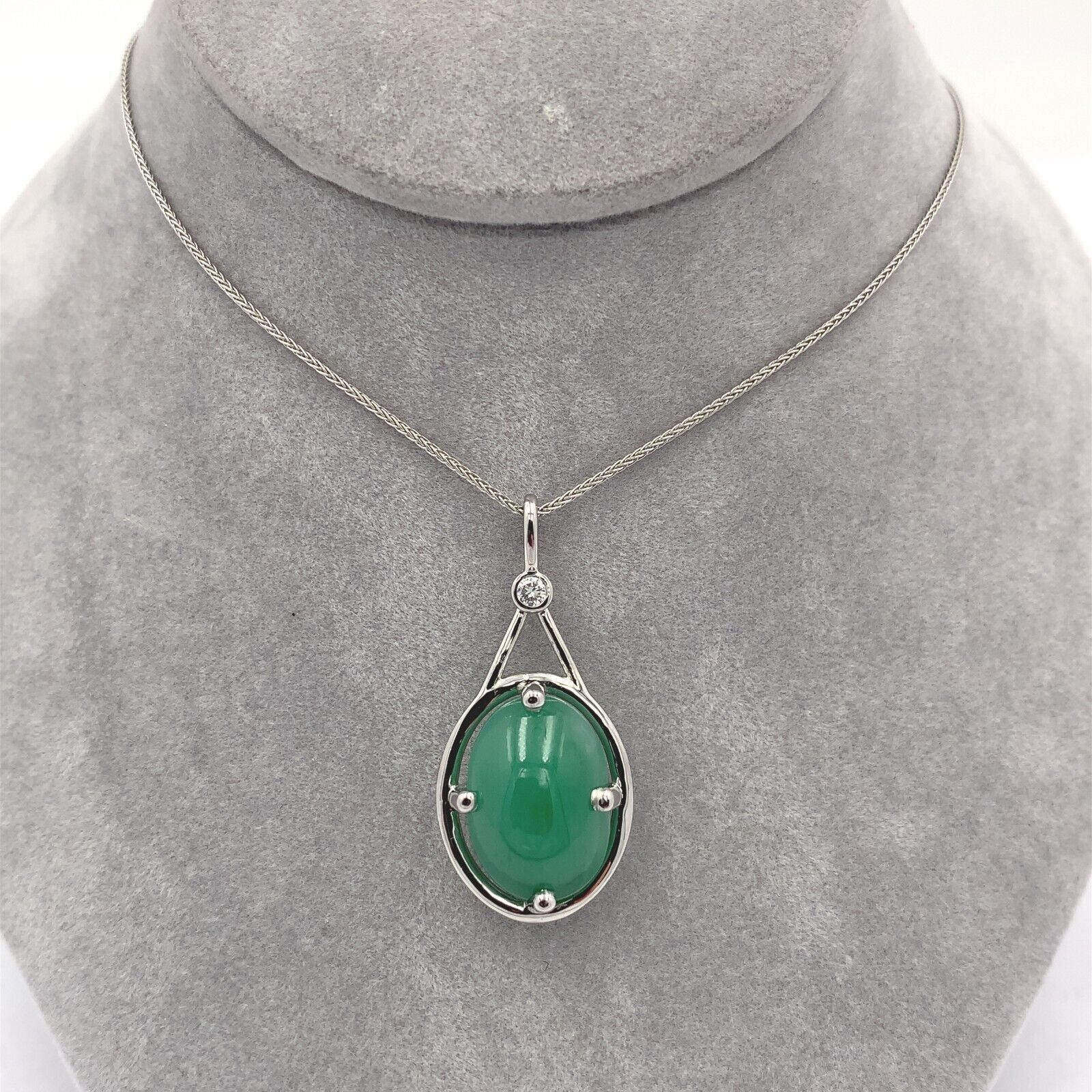 Platinum 9.55 Carat GIA Jadeite A Jade Pendant w/Diamond Platinum Chain (#J6512)