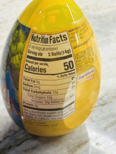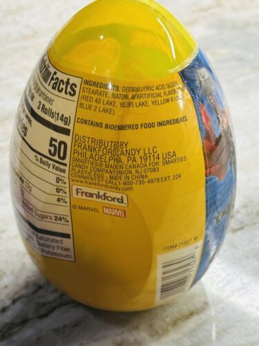 Celebrate Easter with this fun and colorful giant plastic egg from Frankford. The egg is filled with 2.86 oz. of delicious Smarties candy, perfect for satisfying your sweet tooth. The egg has a fun Marvel theme, making it a great gift for any superhero fan.