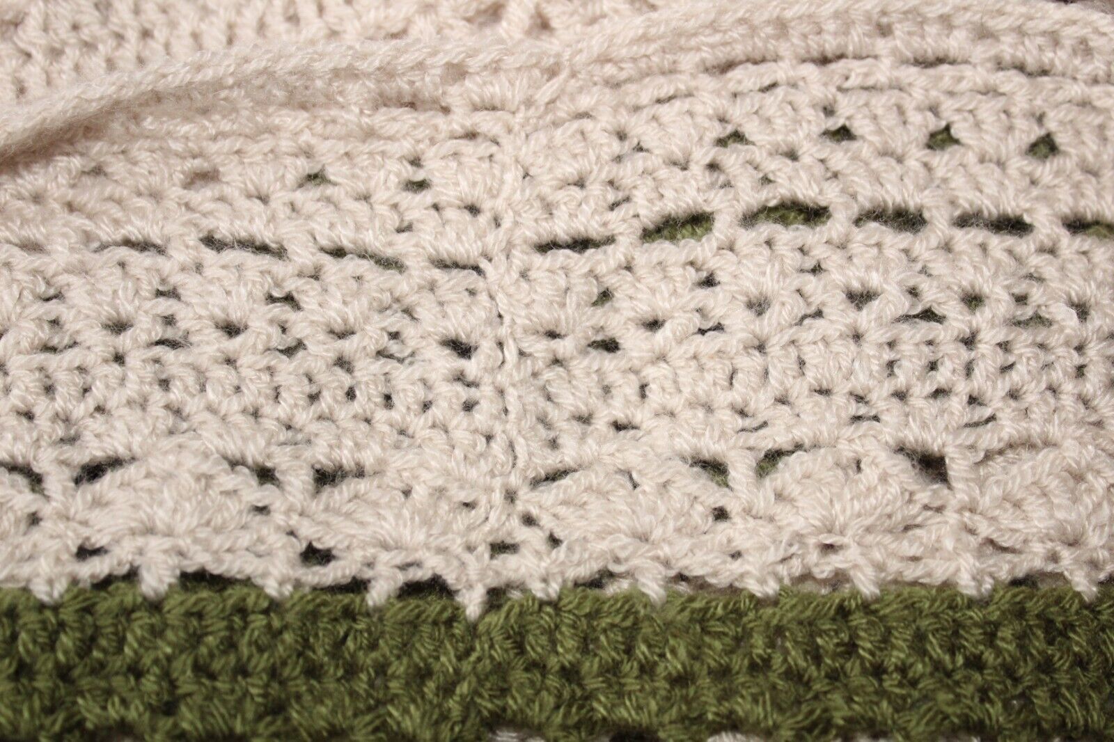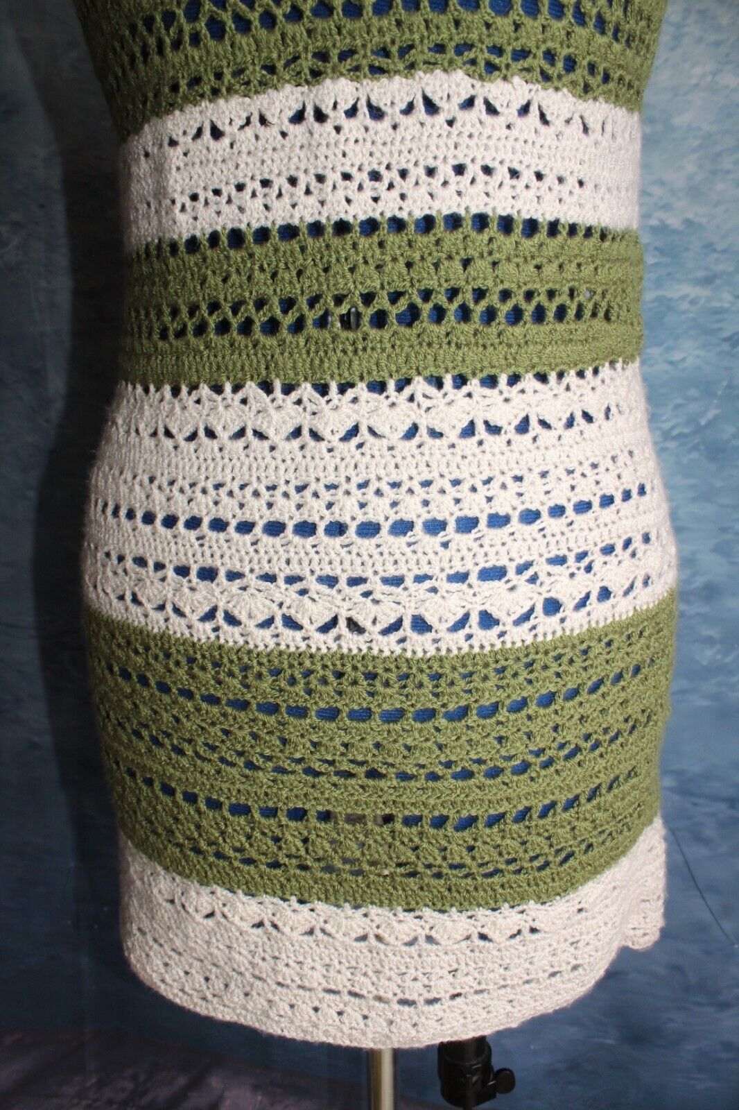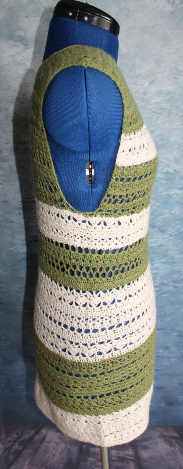 Bohemian Handmade Crochet Sleeveless Green Beige Striped Top ~S/M~