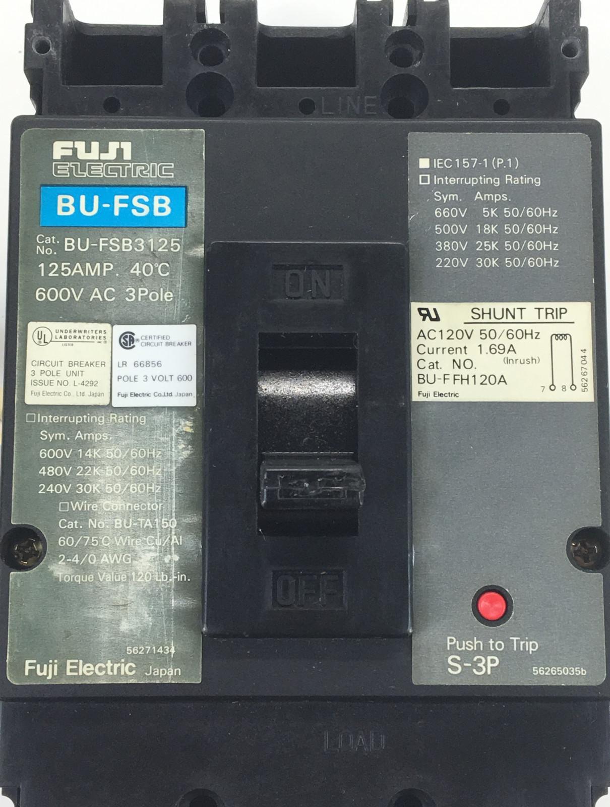 Fuji Electric BU-FSB3125 3-Pole Circuit Breaker, 600VAC 125Amp