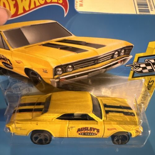 This Hot Wheels die cast car is a must-have for collectors and car enthusiasts alike. The yellow Spear CHEVELLE SS 396 model is a 1:64 scale, unopened in its original box and features short card advertising specimen. It is part of the HW Speed Graphics series, and has been modified with an article. The metal material used gives it durability and quality construction, making it a great addition to any collection. The car is from the Cars character family, and is a contemporary manufacture.New old stock. See photos as they are part of the description and show condition. Box/Package may have signs of age,wear, and handling. We do occasionally use stock photos to better show products - however all listings show actual product photos as well to help show condition.