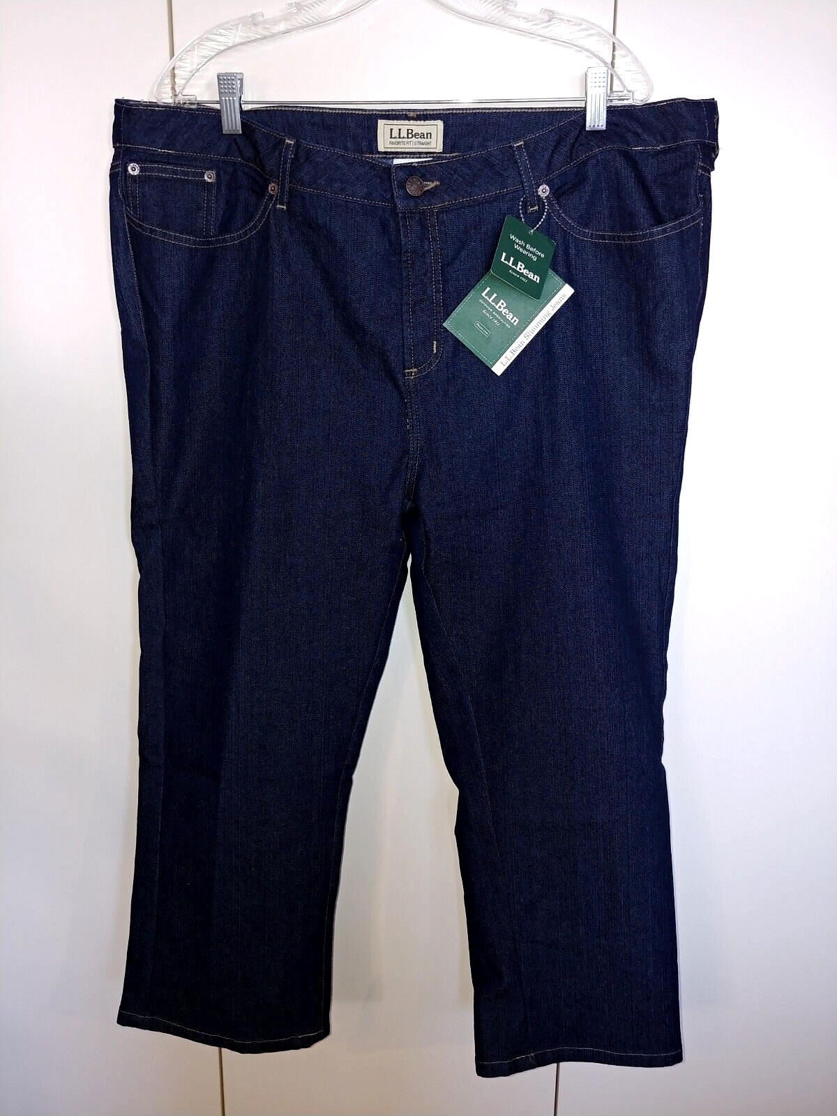 THIS IS A GREAT PAIR OF LADIES L.L. BEAN FAVORITE FIT STRAIGHT CROPPED STRETCH DARK WASH CROPPED JEANS IN A SIZE 20W. THEY ARE NEW, WITH TAGS ATTACHED.