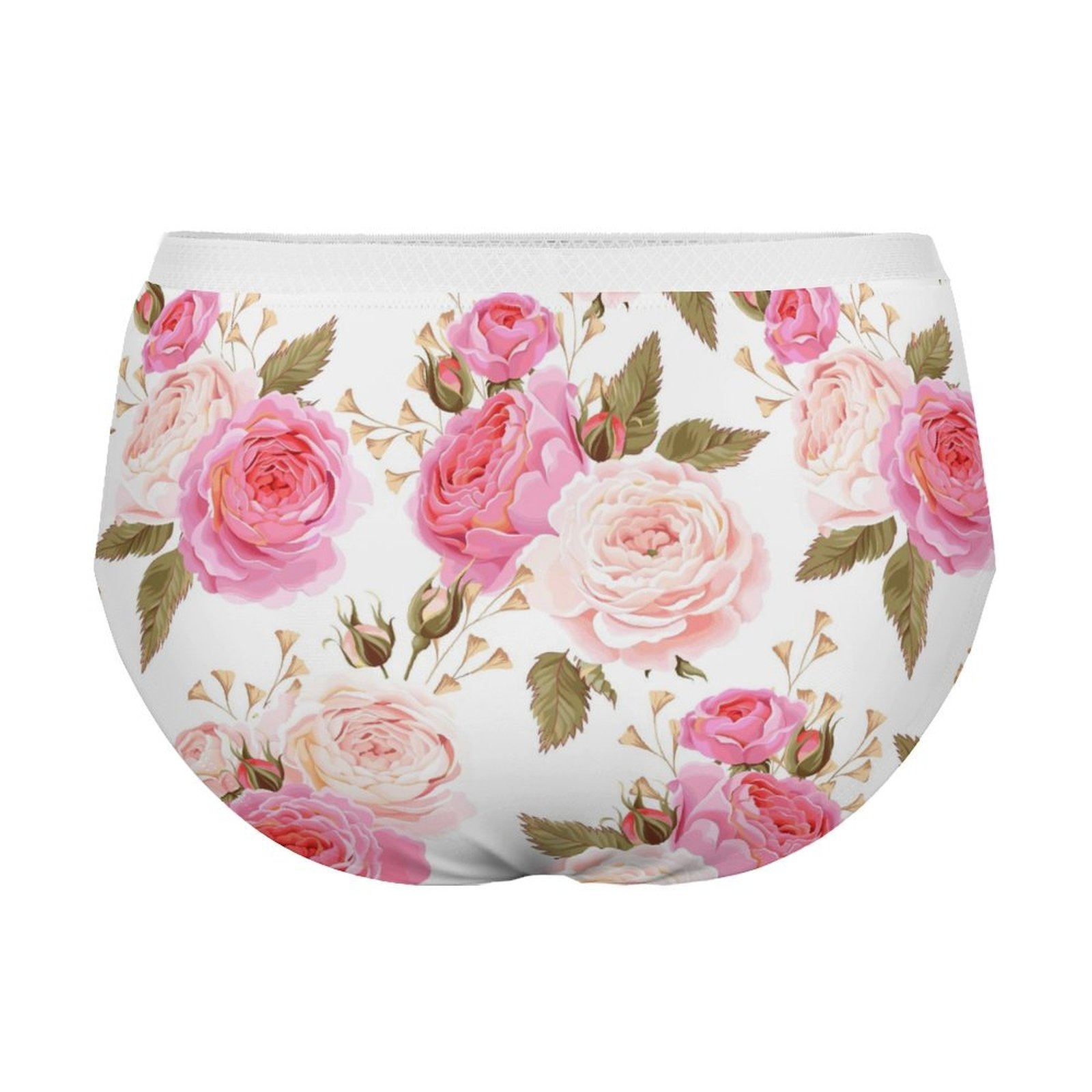 Floral Pink Flowers Panties for Women Lace Briefs Soft Ladies Hipster Underwear