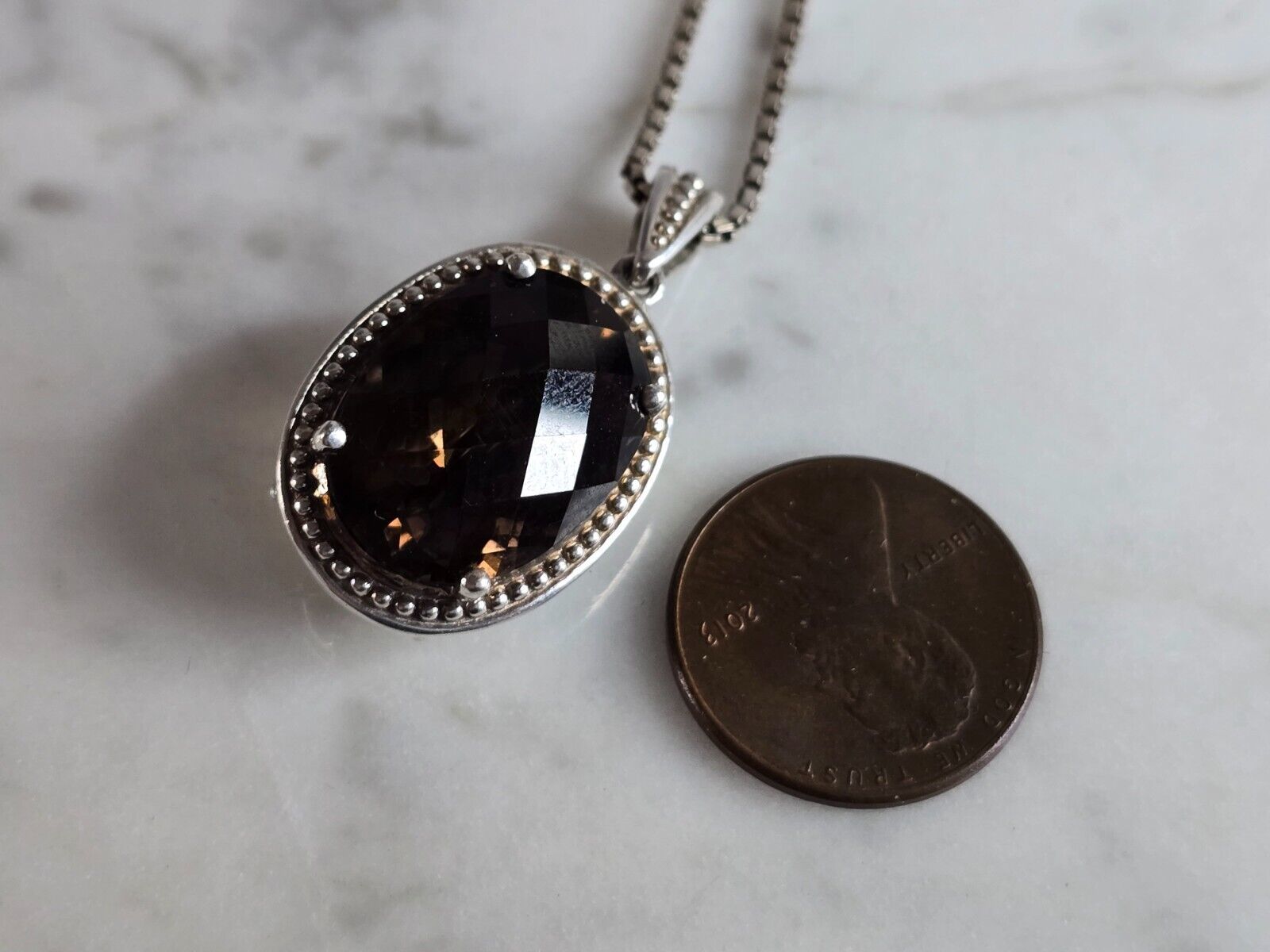 Womens Vintage Sterling Silver Smoky Quartz Pendant Necklace 14.4g E7239 added to cart.