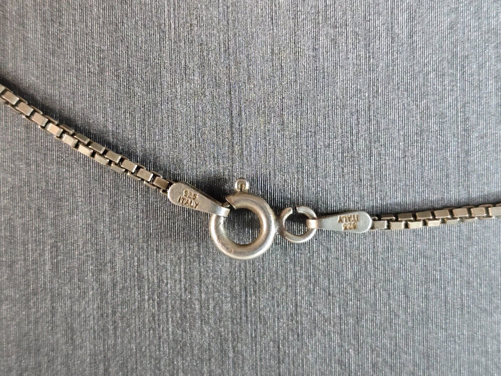 A WOMENS VINTAGE ESTATE STERLING SILVER NECKLACE WITH A SMOKY QUARTZ PENDANT. TOGETHER THEY WEIGHS 14.4g. NOT SURE IF STONE IS NATURAL OR MAN MADE. THE NECKLACE MEASURES 31" LONG AND THE PENDANT MEASURES 1 1/4" LONG BY 5/8" WIDE. ANY QUESTIONS PLEASE DONT HESITATE TO ASK. BE SURE TO CHECK OUT SOME OF MY OTHER GREAT ITEMS UP FOR SALE. THANK YOU
