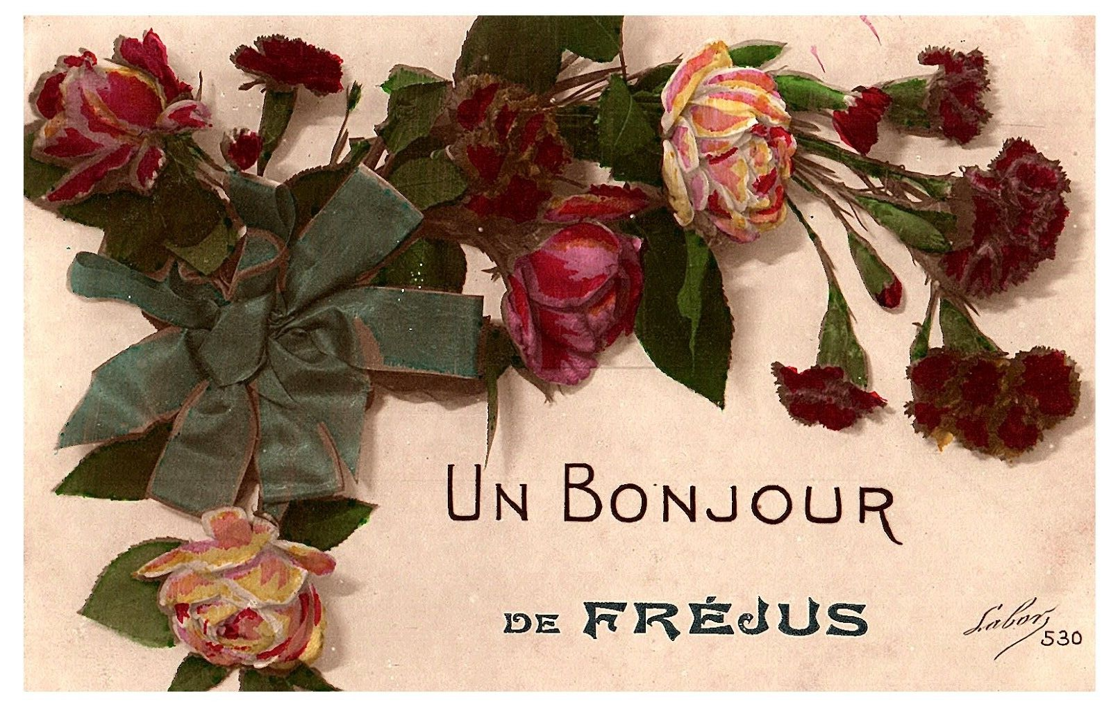 Un Bonjour de Frejus Floral Antique French Postcard & Letter 1909