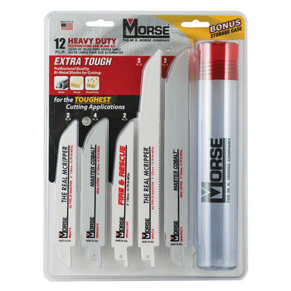 Morse 12pc Reciprocating Saw Blade Set Heavy Duty Free Storage Tube