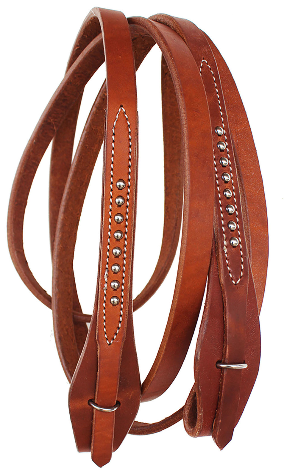 Quick Change One Piece Barrel Reins are Amish made from supple quality harness leather. Oiled for a soft, broken-in feel. Quick Change feature is designed to allow riders to change out reins, bits and headstalls effortlessly. Lightweight reins ensure a great comfortable grip. Features studs on each end for unique look. Measures 8' 2" long x 5/8" wide.(Single)