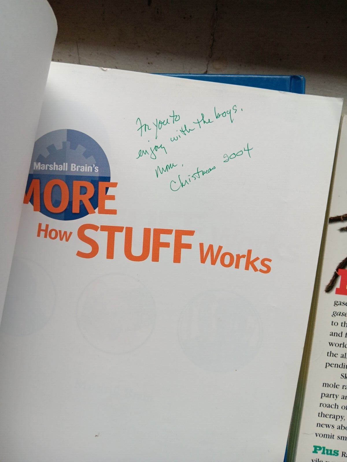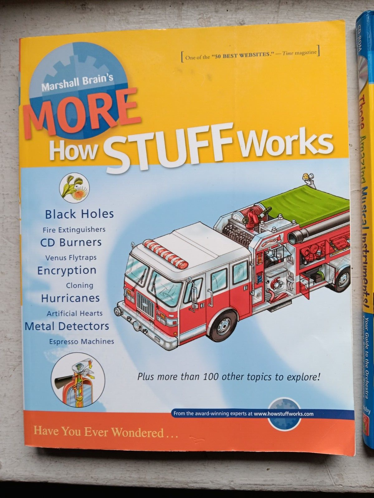2. Marshall Brain's More How Stuff Works. Soft Cover, Crease on cover.and first few pages, inscription in front. I see no writing throughout text. Great illustrations. 310 pages.