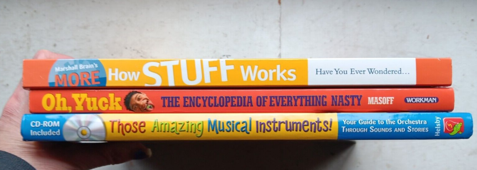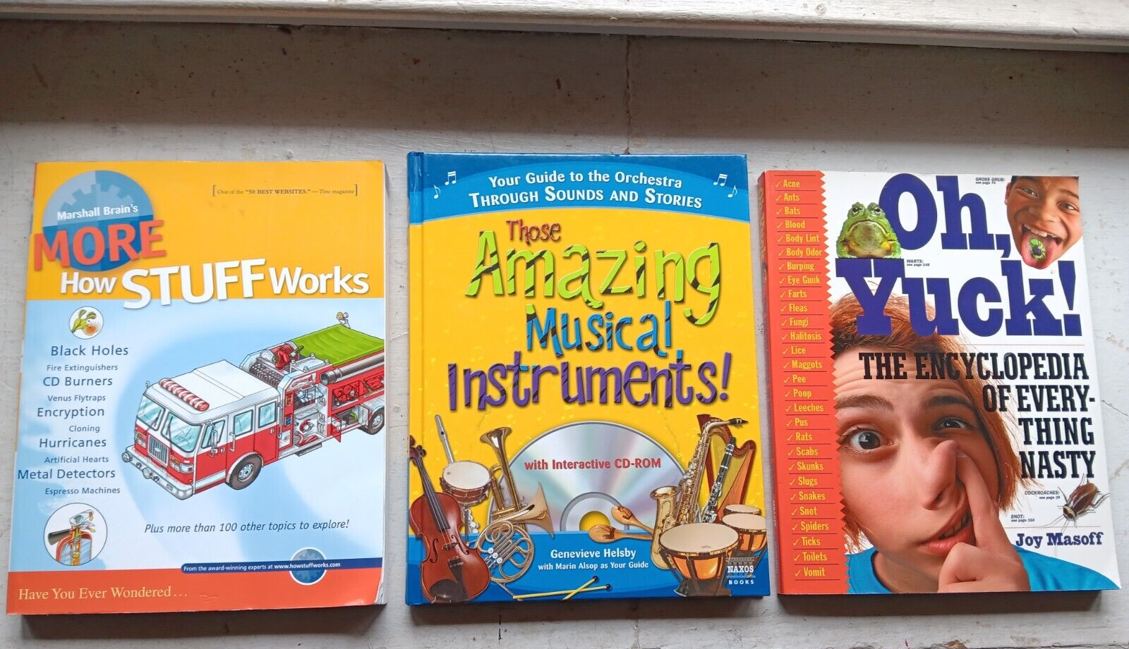 3 Educational Books Amazing Musical Instruments! w/ CD How Stuff Works Oh Yuck