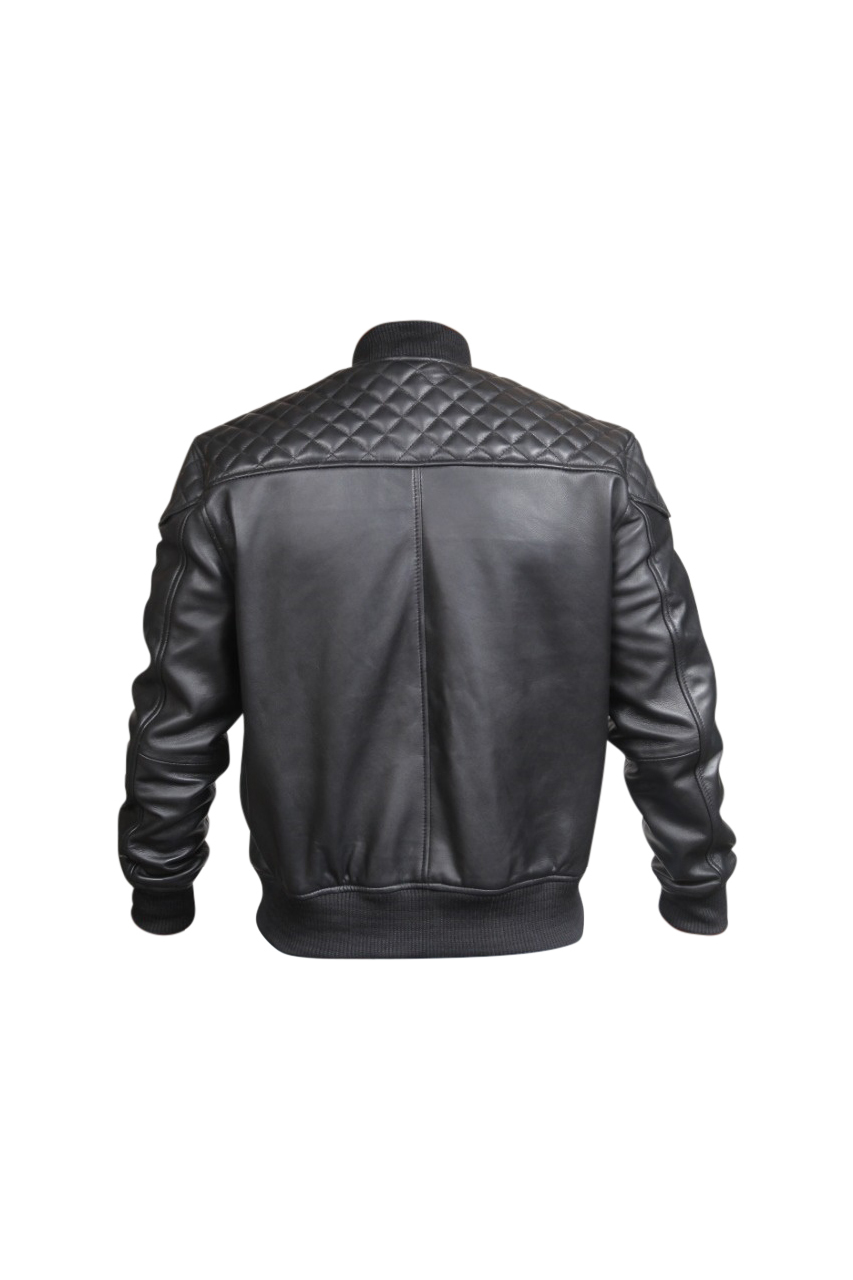 Handmade Men's Quilted Shoulder Rib Design Slim Leather Jacket