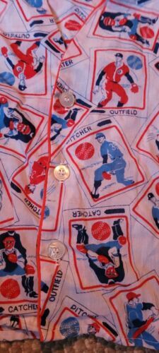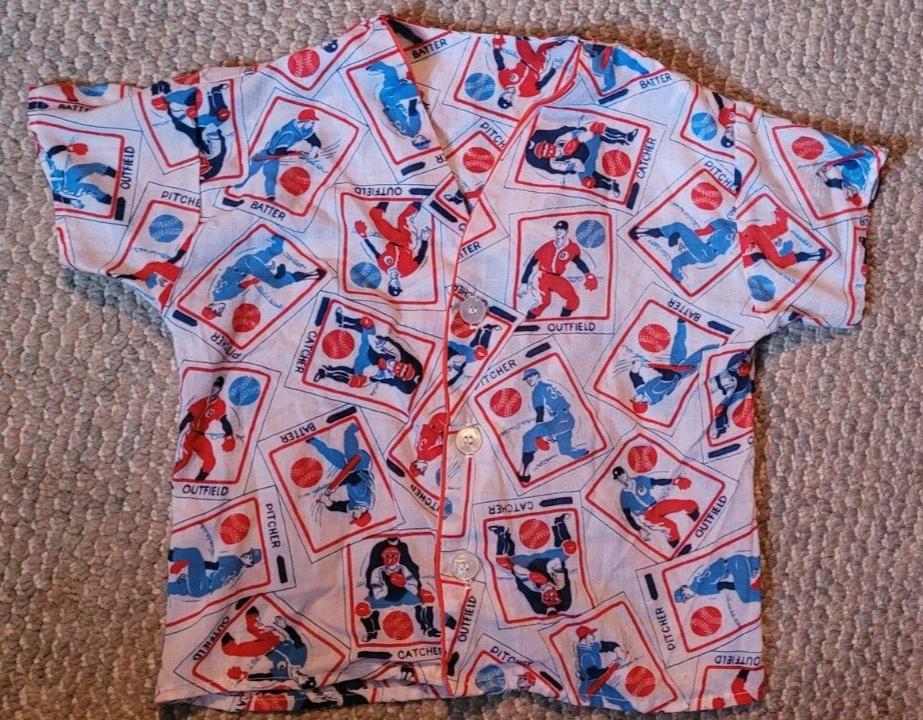 Boys Pajama Top Button UP Baseball Players Bedtime Naptime Vintage Comfy Cute