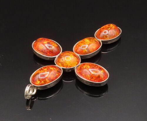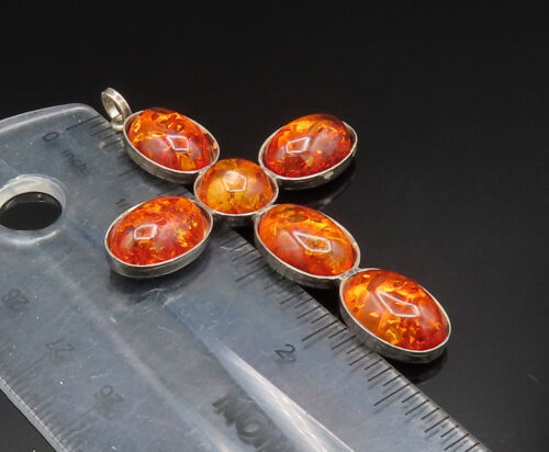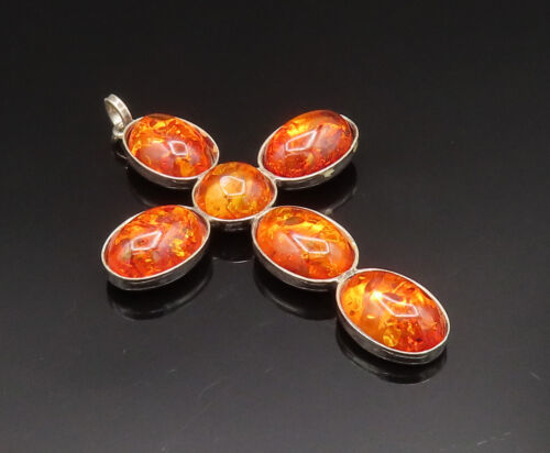 925 Silver - Vintage Multi Stone Baltic Amber Religious Cross Pendant - PT20725