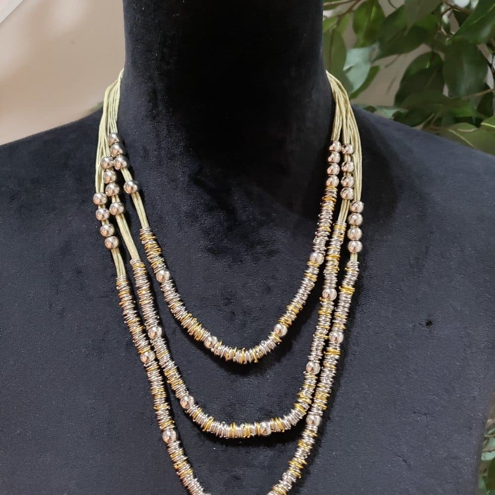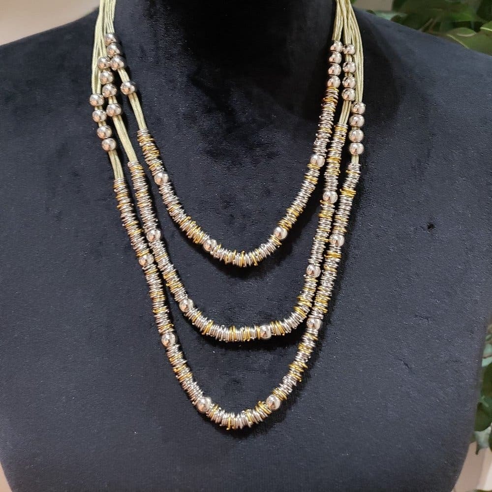 Women Fashion Brass Heishi Beads Ring to Reason Statement Necklace Lobster Clasp