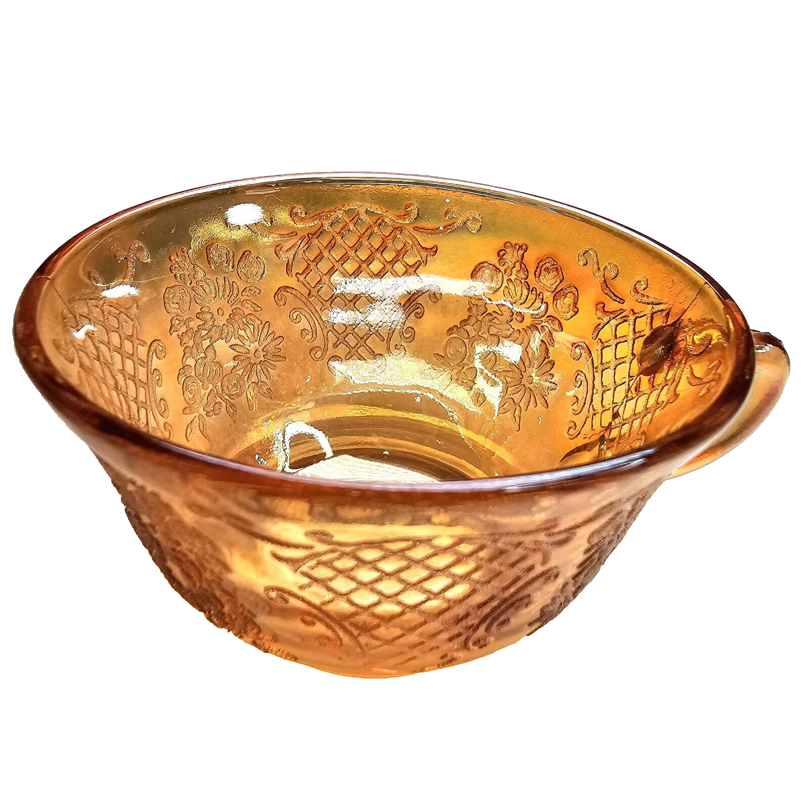 Marigold Carnival Glass Iridescent Tea Cup Normandie Bouquet Pineapple Flower