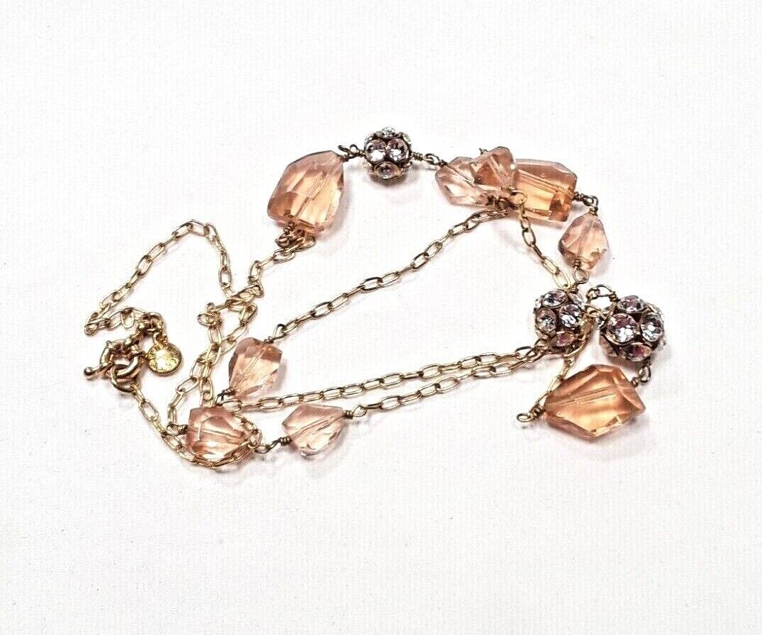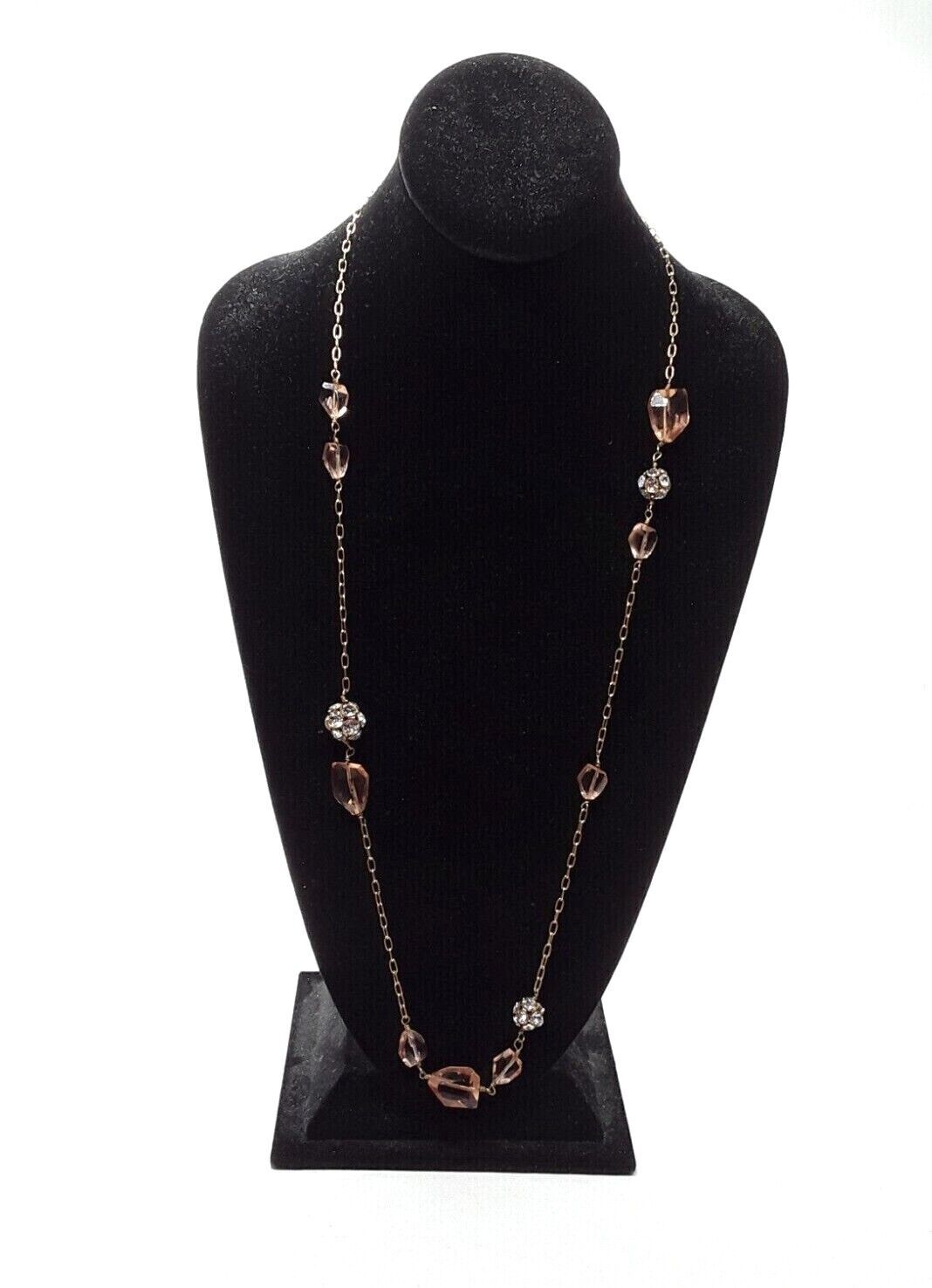 J Crew Rhinestone Pink Lucite Beaded 32" Single Strand Chain Necklace EUC