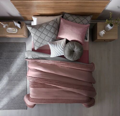 POMPONS DEEP ROSE GRAY TEENS KIDS GIRLS REVERSIBLE COMFORTER SET 4 PCS KING SIZE