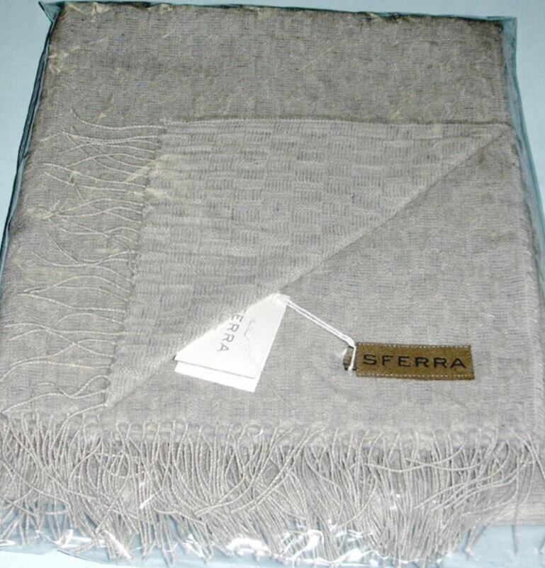 Sferra Palmilla Throw Grey Fringed Linen/Wool Checkered Basket Weave 51x70" New