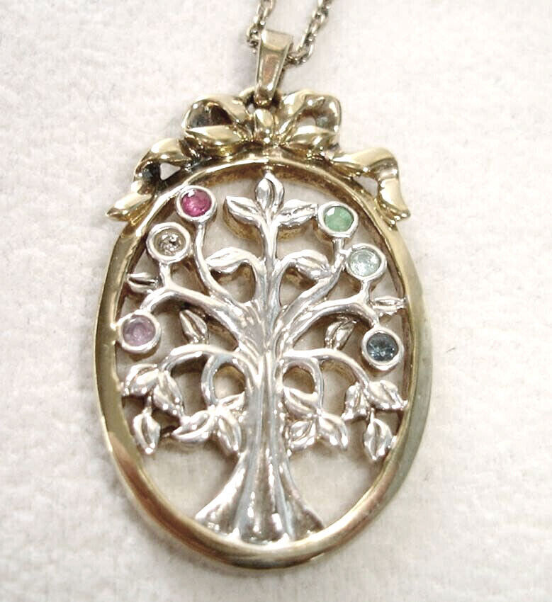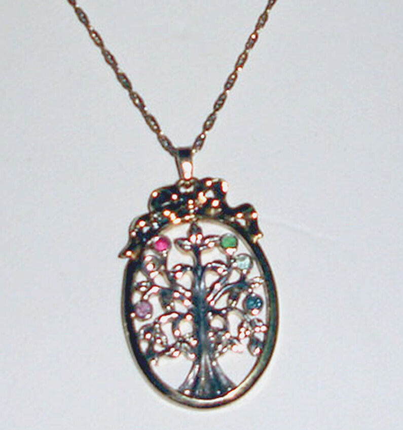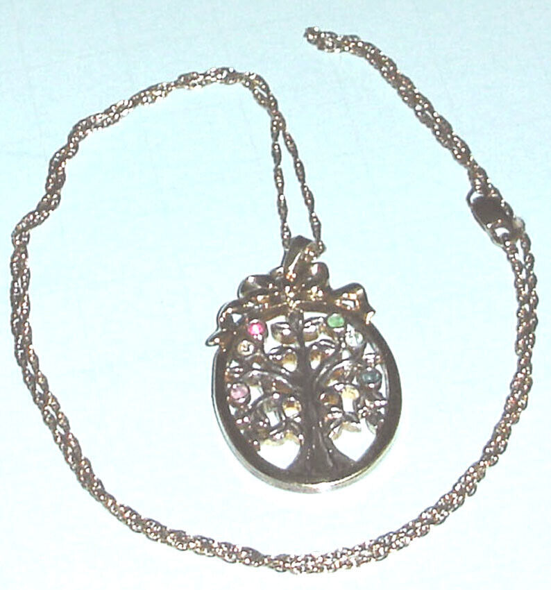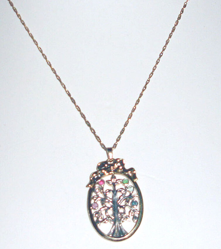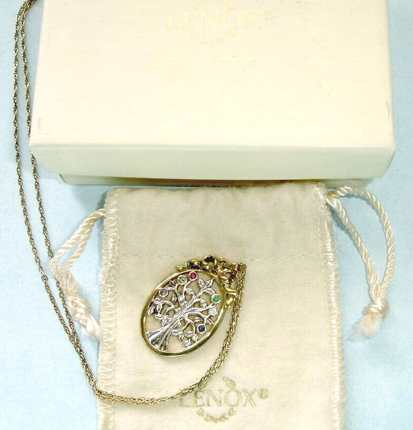 Lenox Pendant Necklace Multi Gem Crystal Oval Tree Gold plated Silver 2-Tone New