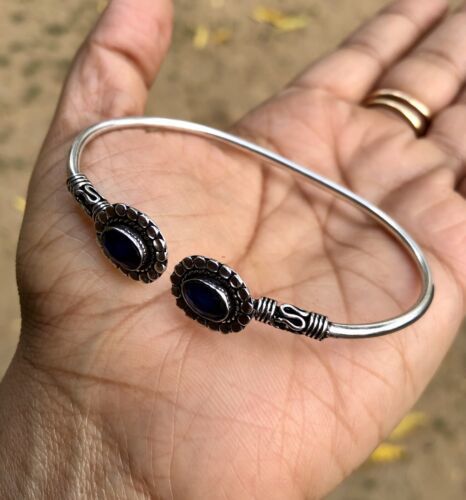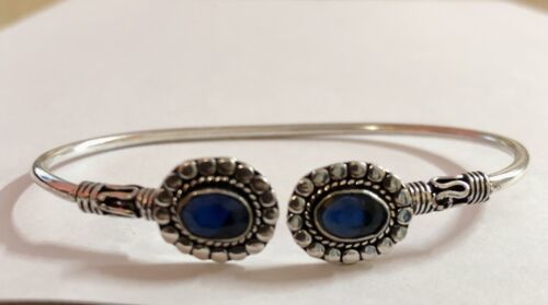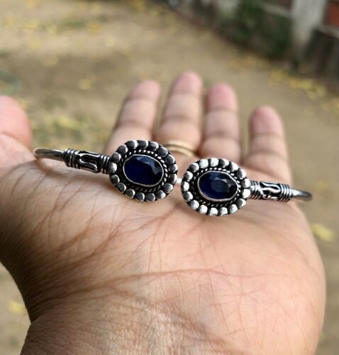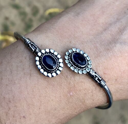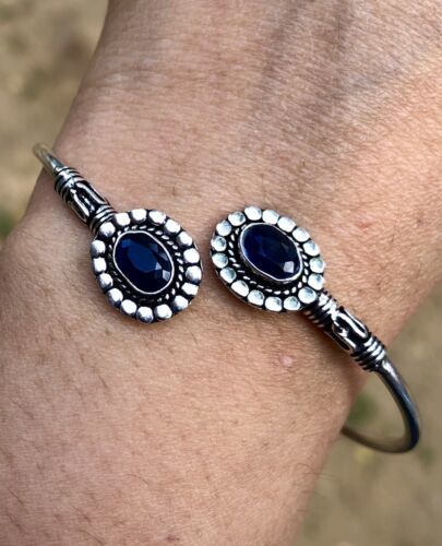 Handmade Cuff Bangle Jewelry German Silver, Natural Blue Sapphire Gemstone 1