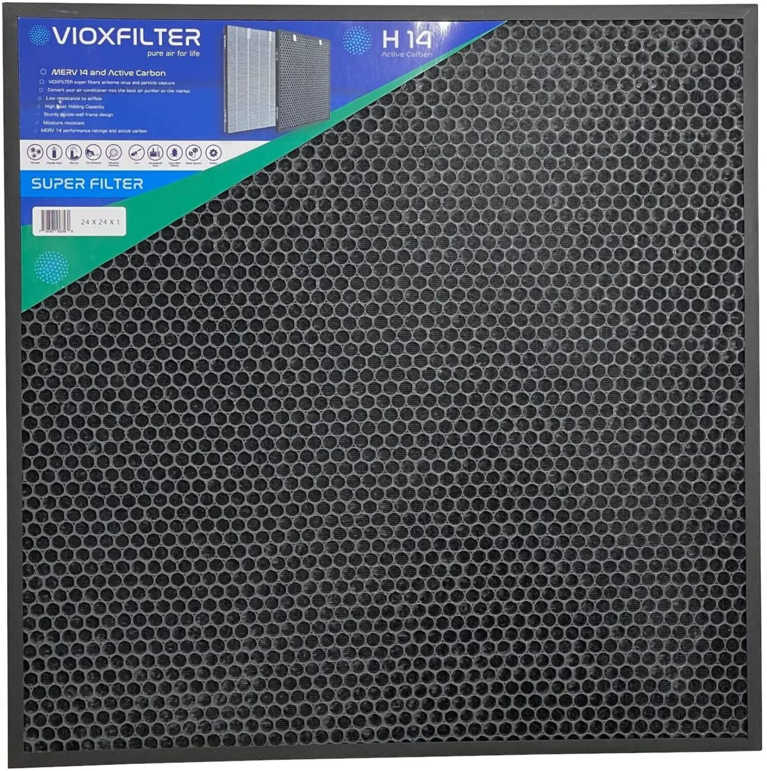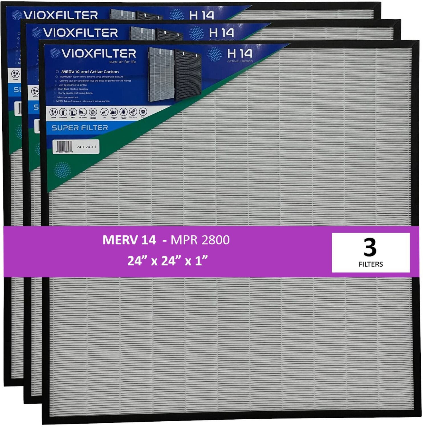VioxFilter H14AF24241 MERV 14 Pleated 24" x 24" x 1" AC Furnace Air Filter (Pack of 3), Low Resistance to Air Flow, High Dust Holding Capacity, Sturdy Double-wall Frame Design, Moisture Resistant, Filters Air from A/C, Cleans Up by PM 2.5. Helps to Remove Bad Odors