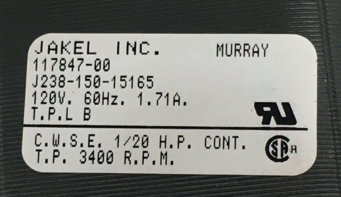 This is JAKEL J238-150-15165 Furnace Draft Inducer Blower Motor AMETEK 117847-00 120V 3400 RPM used part.