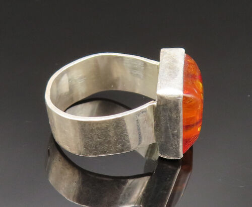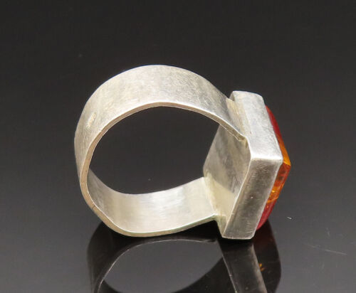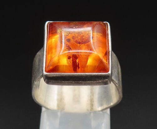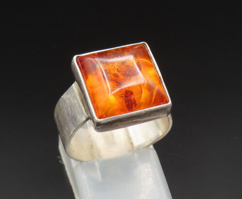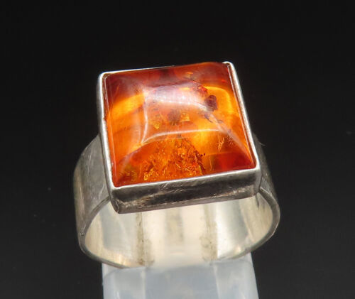 EUROPEAN 925 Silver - Vintage Square Baltic Amber Smooth Ring Sz 7 - RG24884