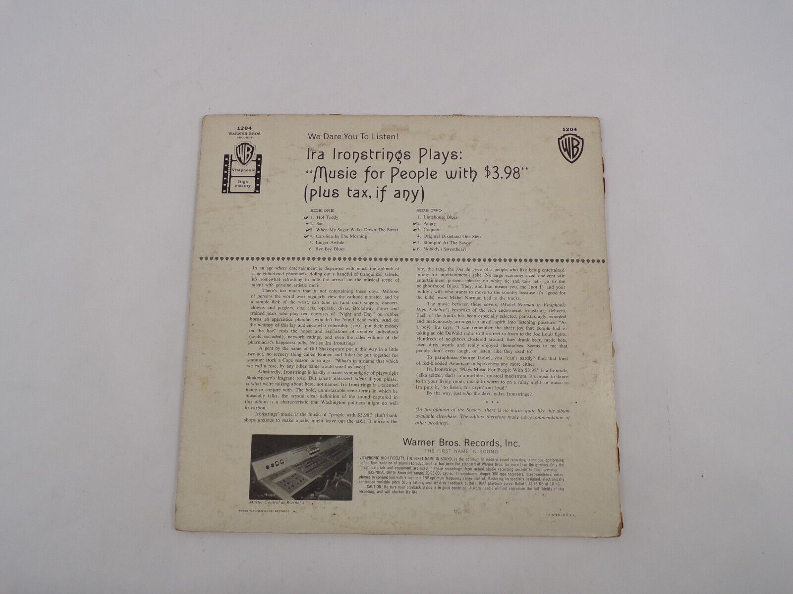 - Featuring: Ira Ironstrings Plays: "Music For People With $3.98" Hot Toddy San When My Sugar