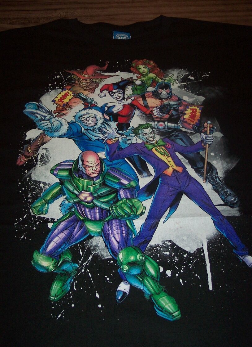 This is a BATMAN VILLAINS JOKER BANE HARLEY QUINN LEX LUTHER MR FREEZE SCARECROW POISON IVY Dc Comics T-shirt. It is a size 3XL, and it is NEW. It is 28 inches from armpit to armpit and 33 1/2 inches in length. Combine auctions to save on shipping. AG