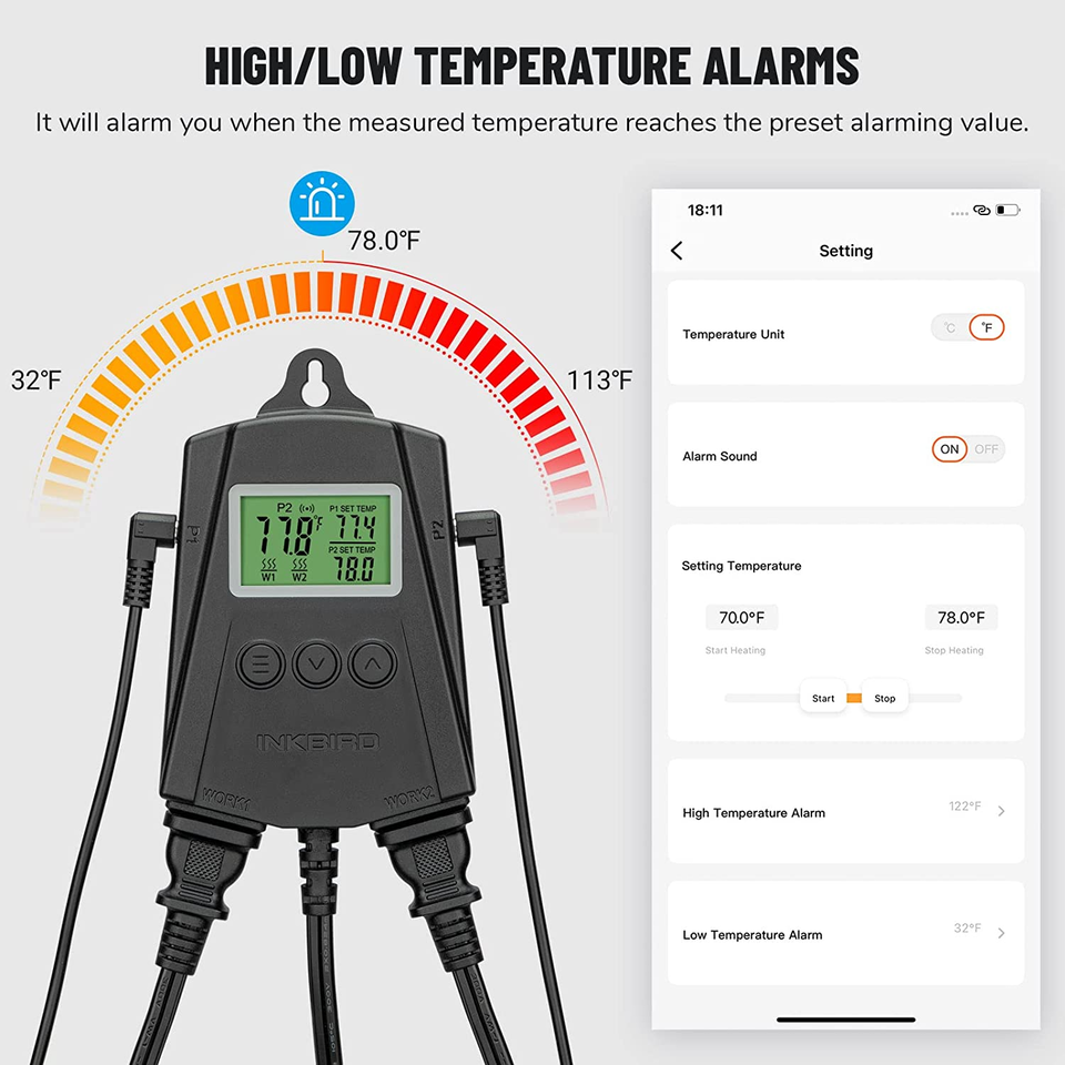 ?WiFi App?The wifi temperature controller with 2 germination heat mats; data charts, data exported, high/low-temperature alarms, and probe error alarms are available via the app