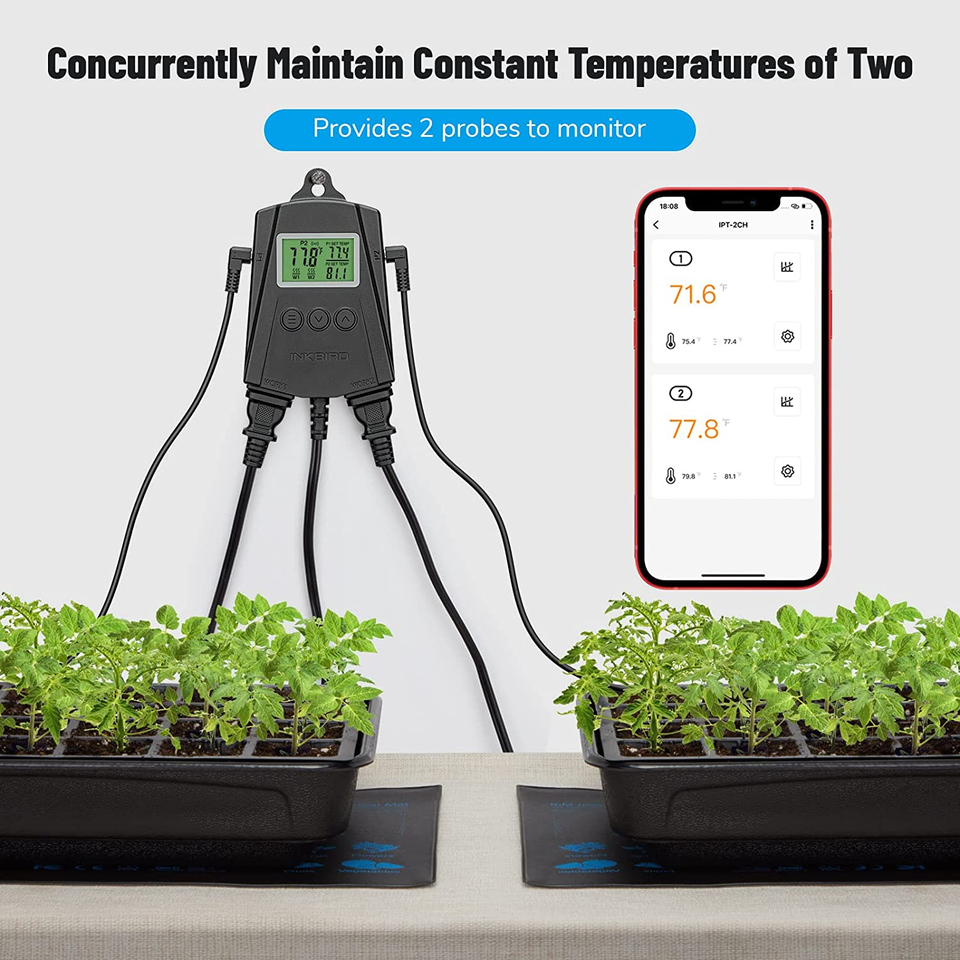 Wifi Temperature Controller Combo with 2 Heat Mats for Plants Germination Seed Starting, IPT-2CH Smart Thermostat with 2 Outlets and 2 Probes (Combo)