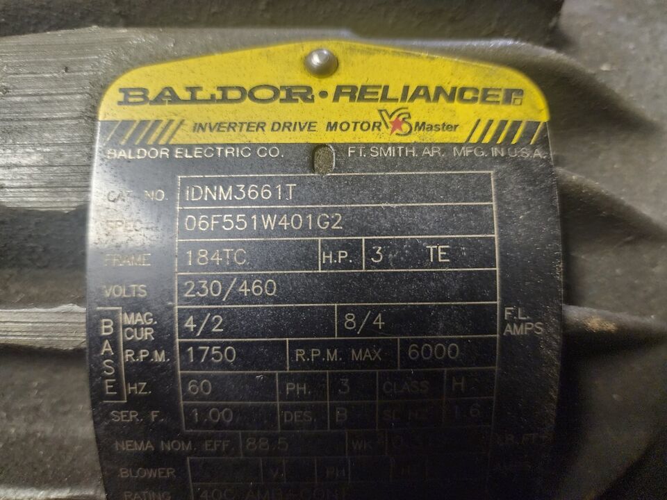 Baldor 3 HP 3 Ph. 1750 RPM Motor 184TC Cat No. IDNM3661T Inverter Drive Motor