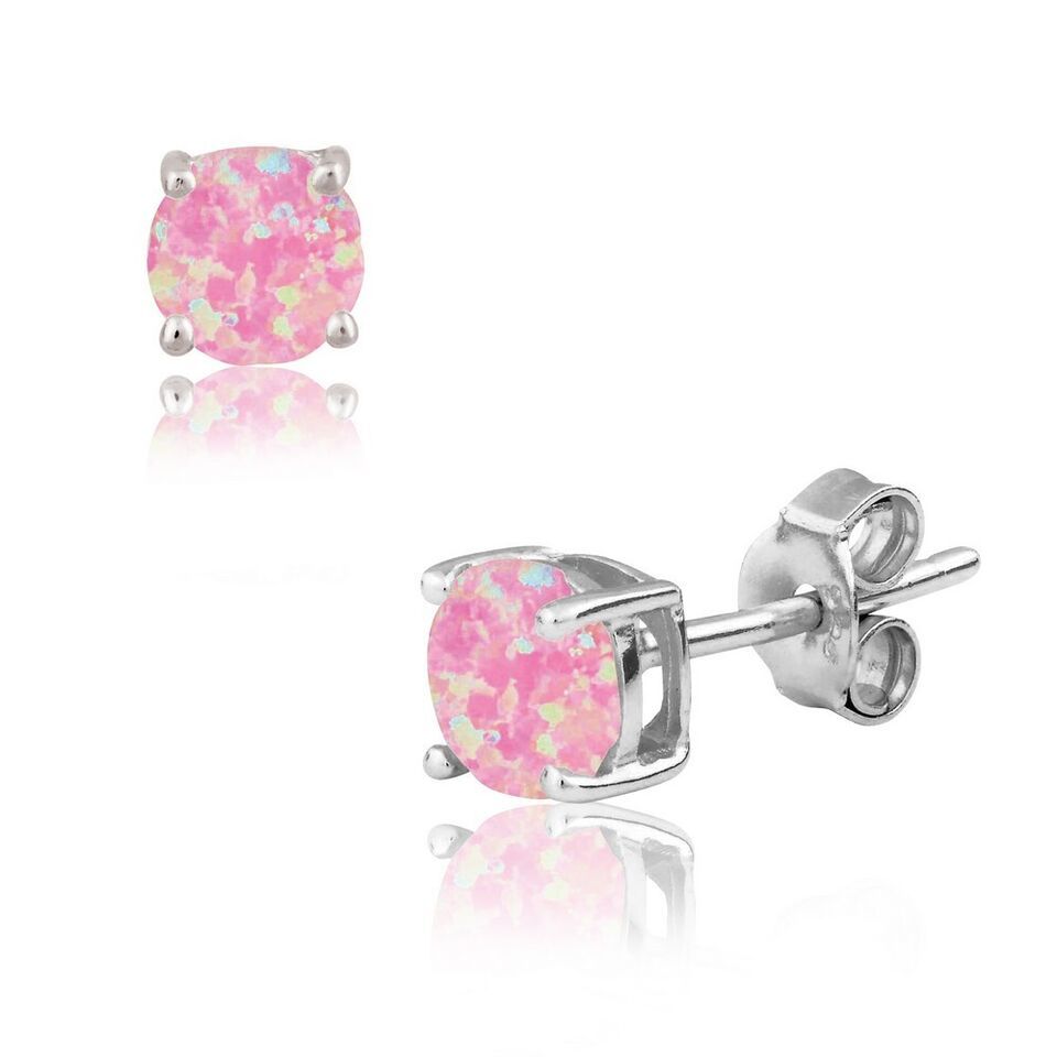 Sterling Silver Pink Opal Round Stud Earrings and 49 similar items