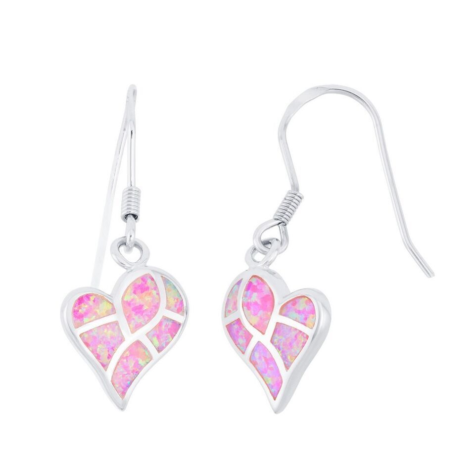 Sterling Silver Pink Inlay Opal Heart Mosaic Style Earrings