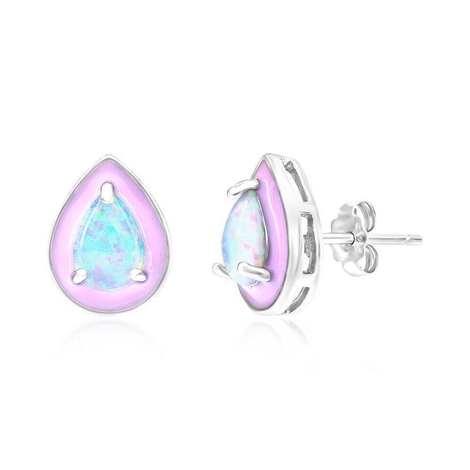 Sterling Silver White Opal Pink Enamel Pearshaped Studs