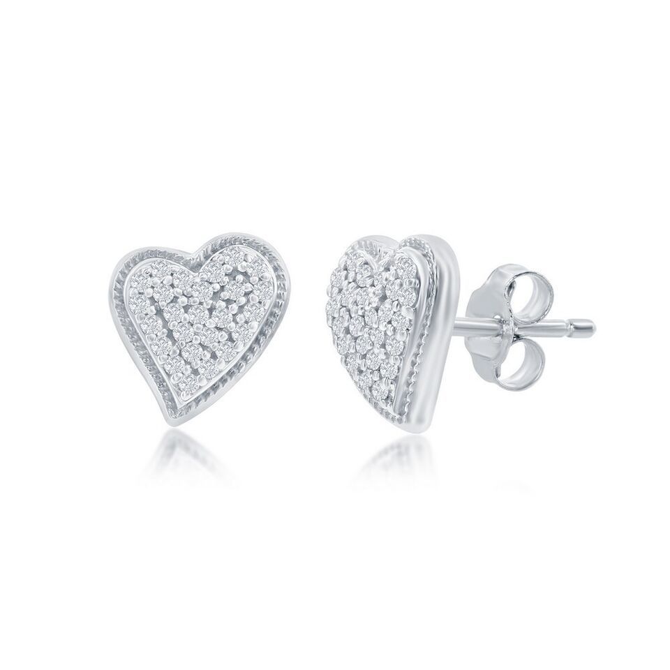 Sterling Silver Heart Diamond Stud Earrings - (50 Stones)