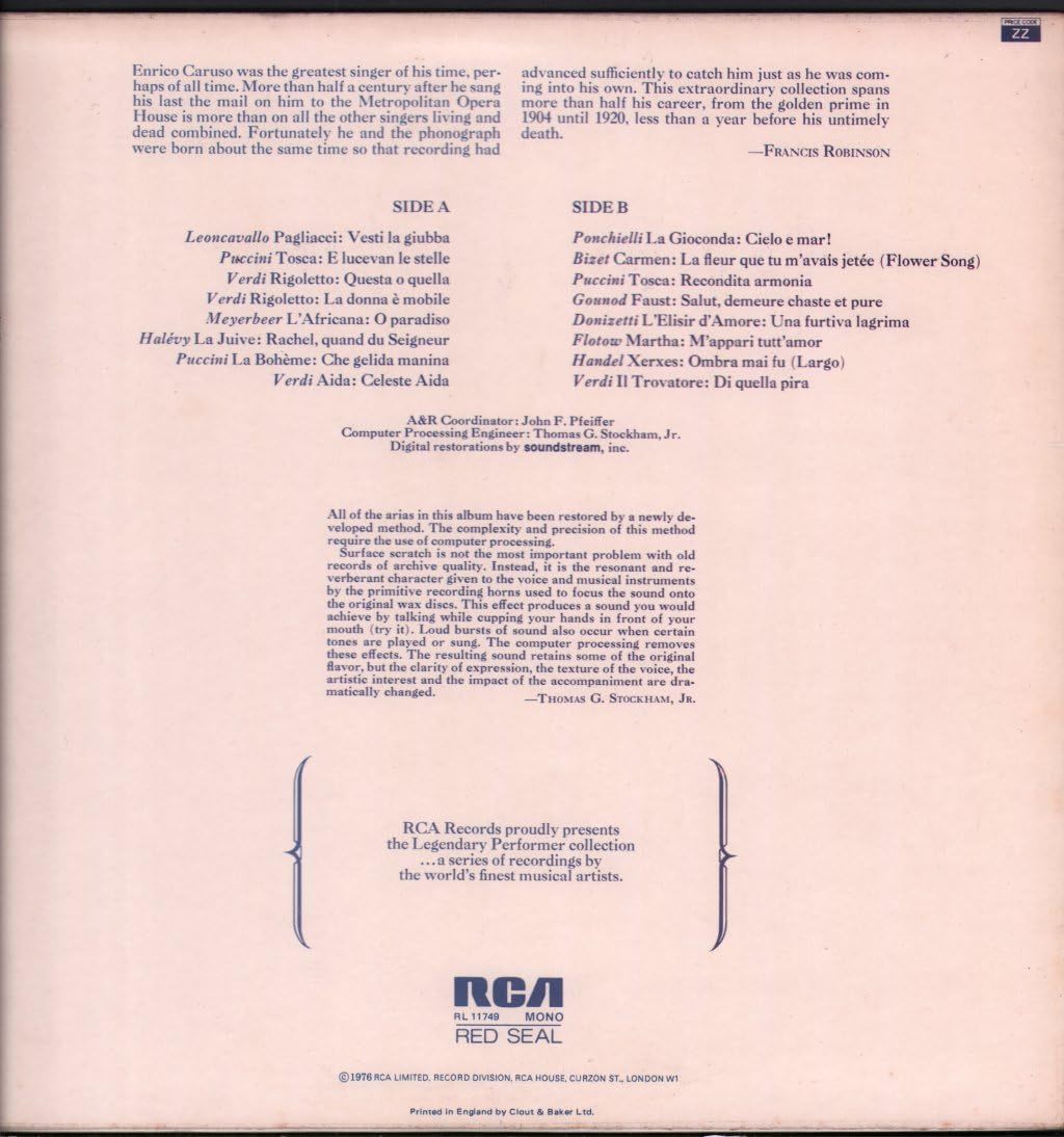 A Legendary Performer LP RCA Red Seal, RL 11749, 1976, 16 Track |