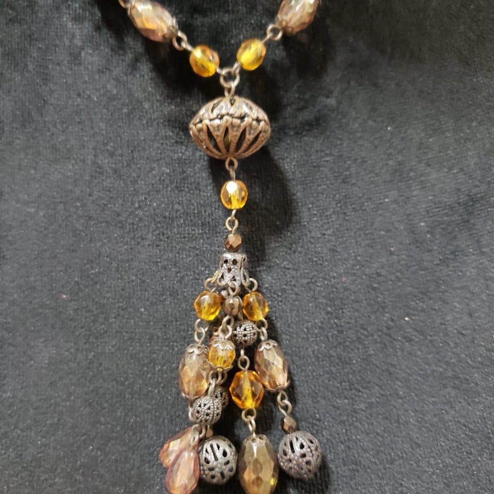 Womens Ethnic Boho Style Beaded Art Deco Tassel Charm Necklace w/ Lobster Clasp
