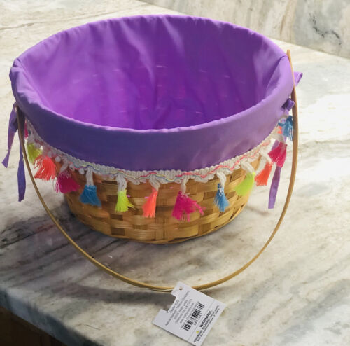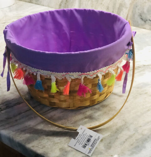 Hobby Lobby Tinsel Bamboo Seasonal Multicolor 2 Pc Easter Basket 10x10Inches