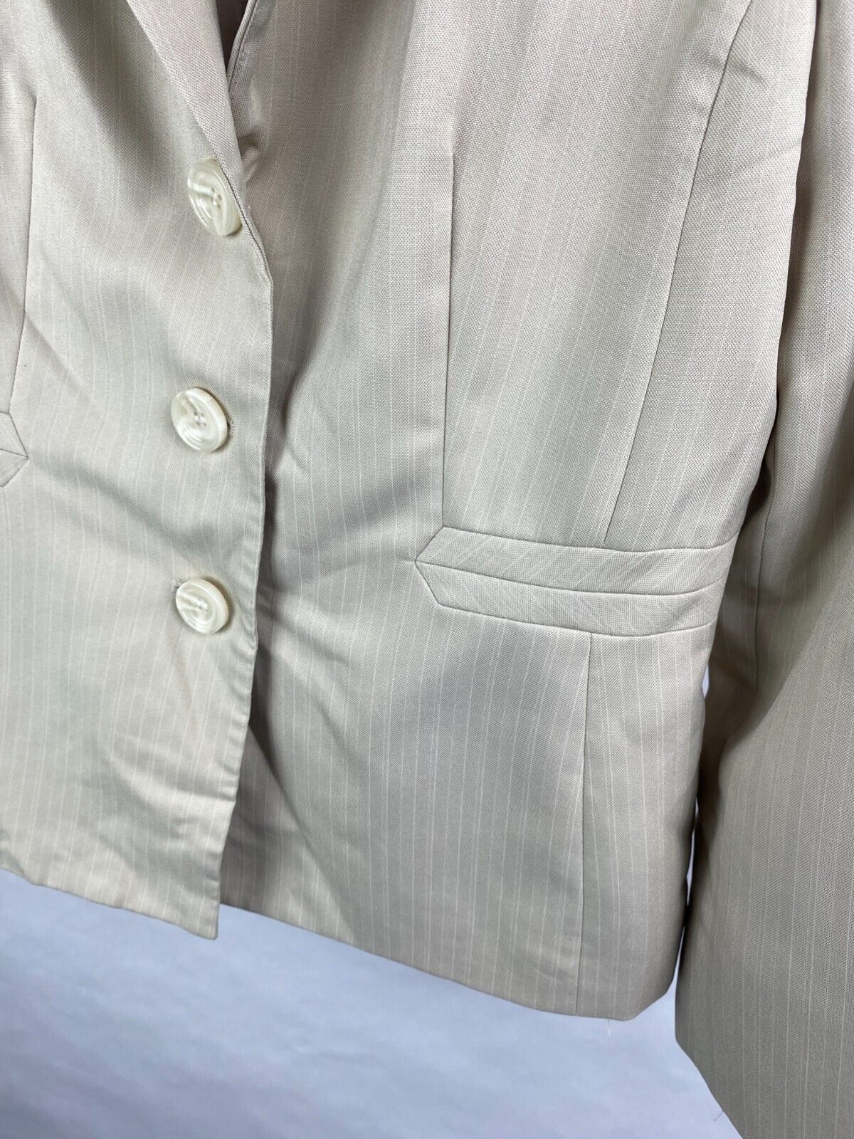 Evan Picone Womens 10 Beige 3-Button Collared Suit Jacket, Pinstripes