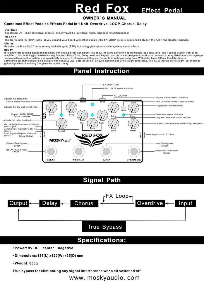 Mosky Audio RED Fox 4-in-1 Guitar Effects Pedal Chorus Delay Overdrive Loop Unit