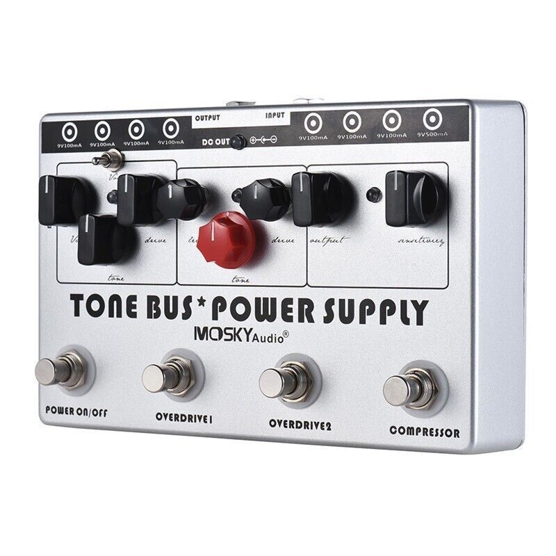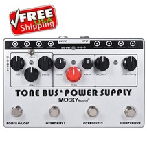 Mosky has been on the cutting edge of offering quality innovative effects and power supplies at great prices. Here, they have combined Overdrive, Compression with a Power Supply all in one Box. Great center point unit for either a good take along or at the heart of your chain and then add your 9V effects straight to the Tone Bus. Plenty of power to capture almost any 9V configuration.