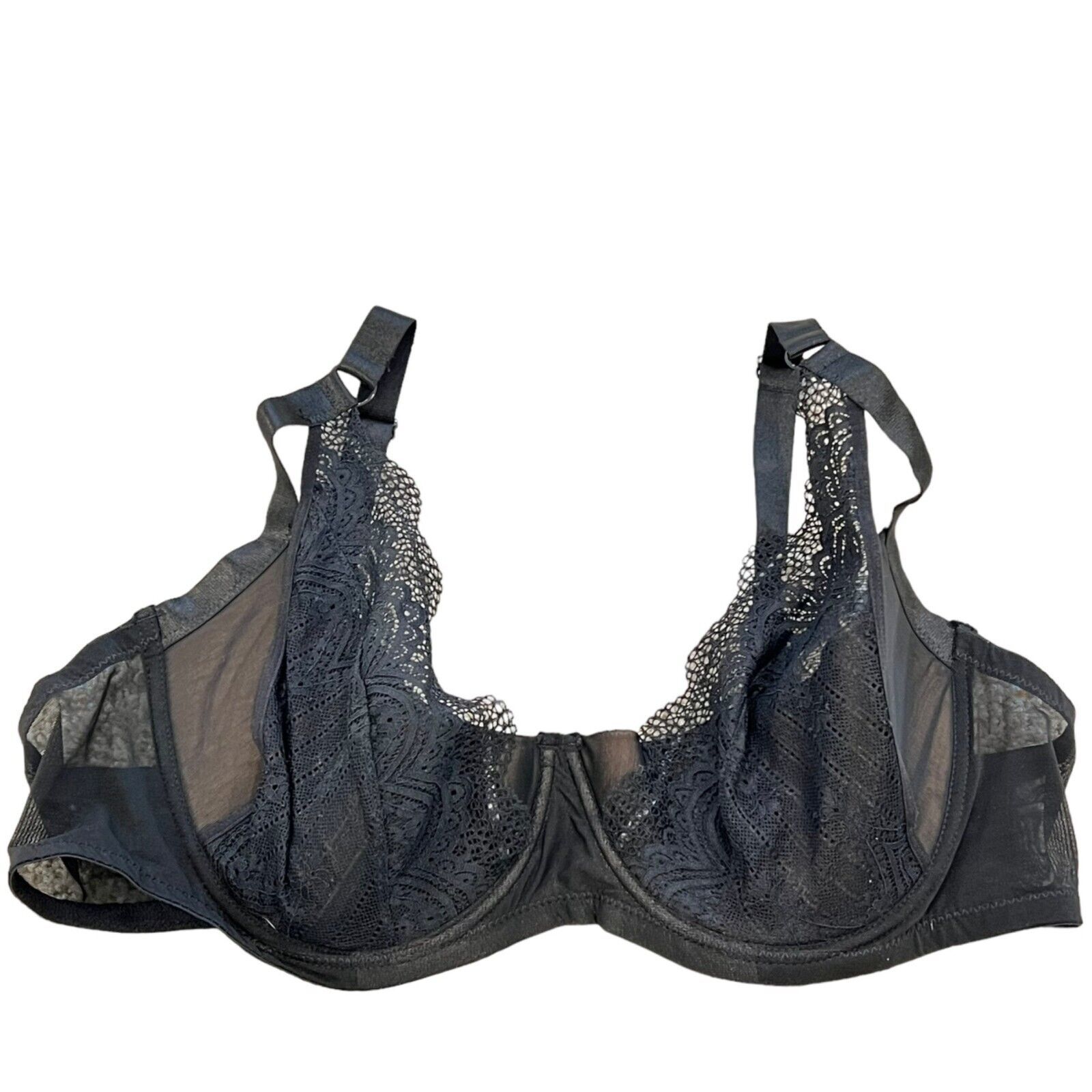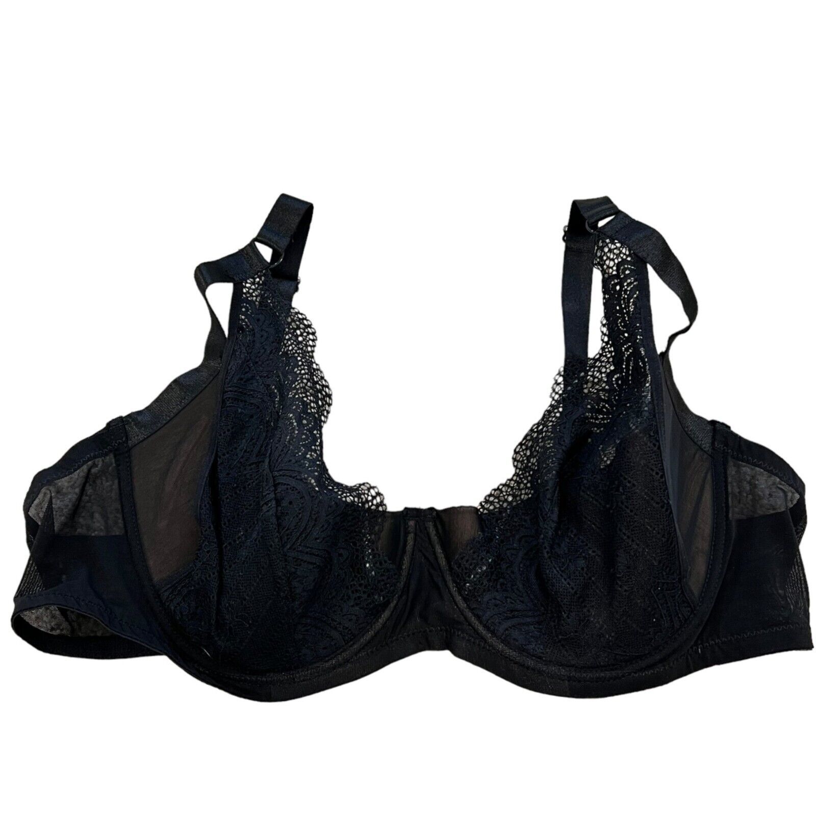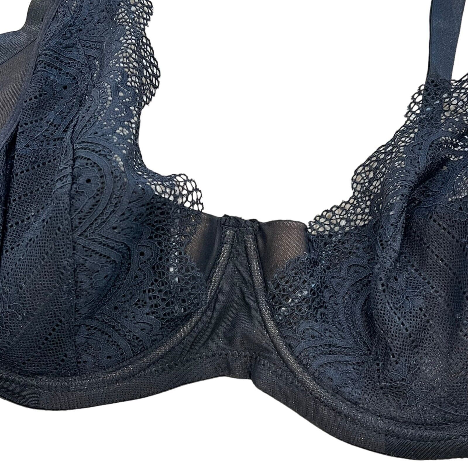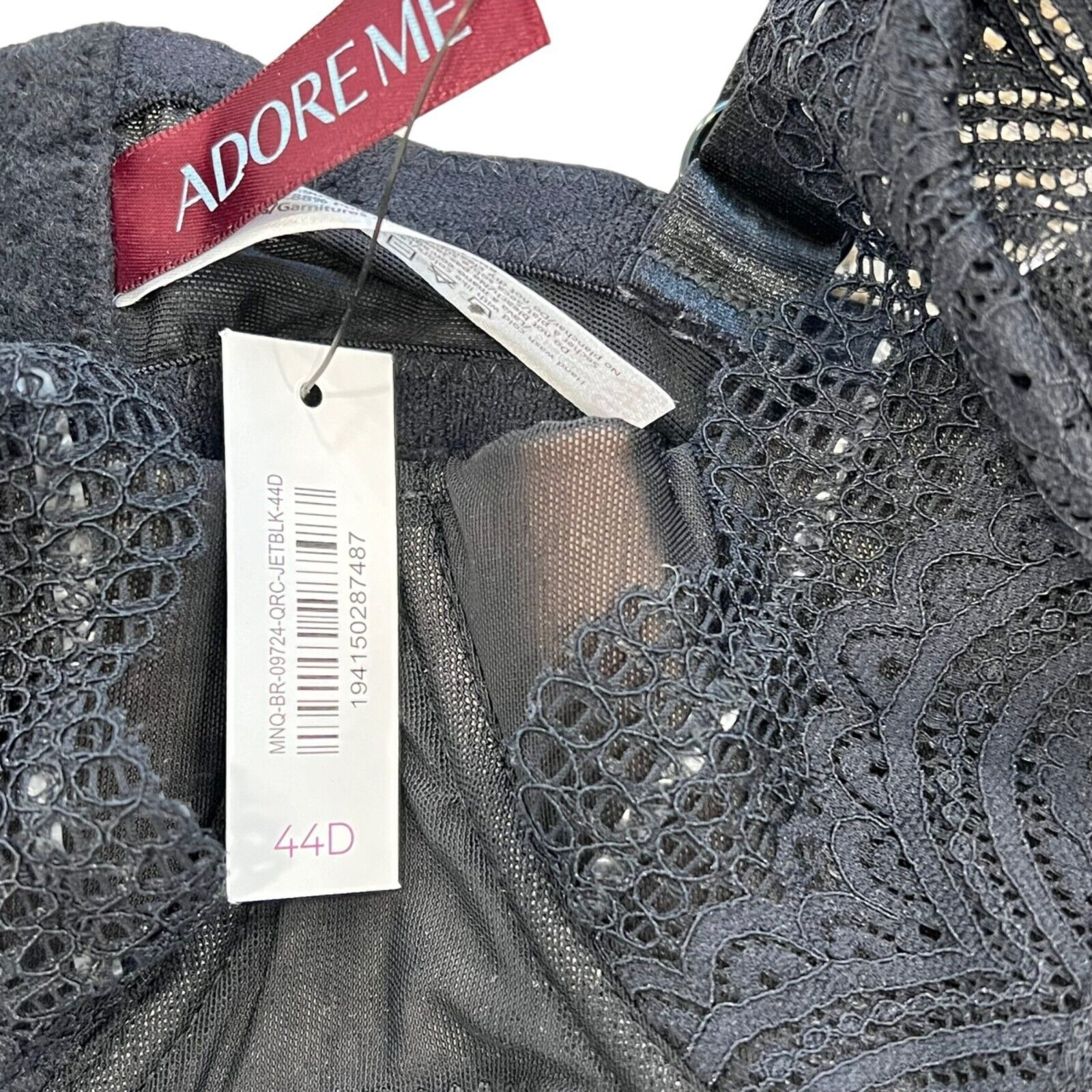 Adore Me Black Lace Lightly Lined Underwire Balconette Bra 44D NWT