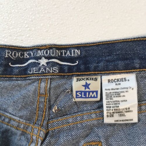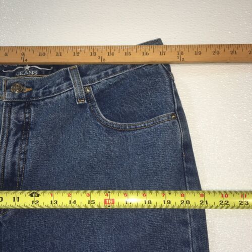 A good looking pair of Rocky Mountain 15XL / 15 XL (34 x 36) ROCKIES SLIM Women?s Jean's with Back Pockets, in excellent condition, with some wear on the hems. Please see photos for condition and measurements.