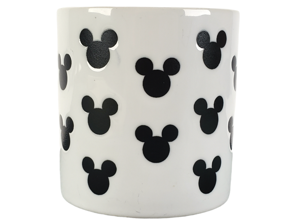 Disney Coffee Mug Cup White Black Mickey Mouse Silhouette Ears Logo 3.5? Tall